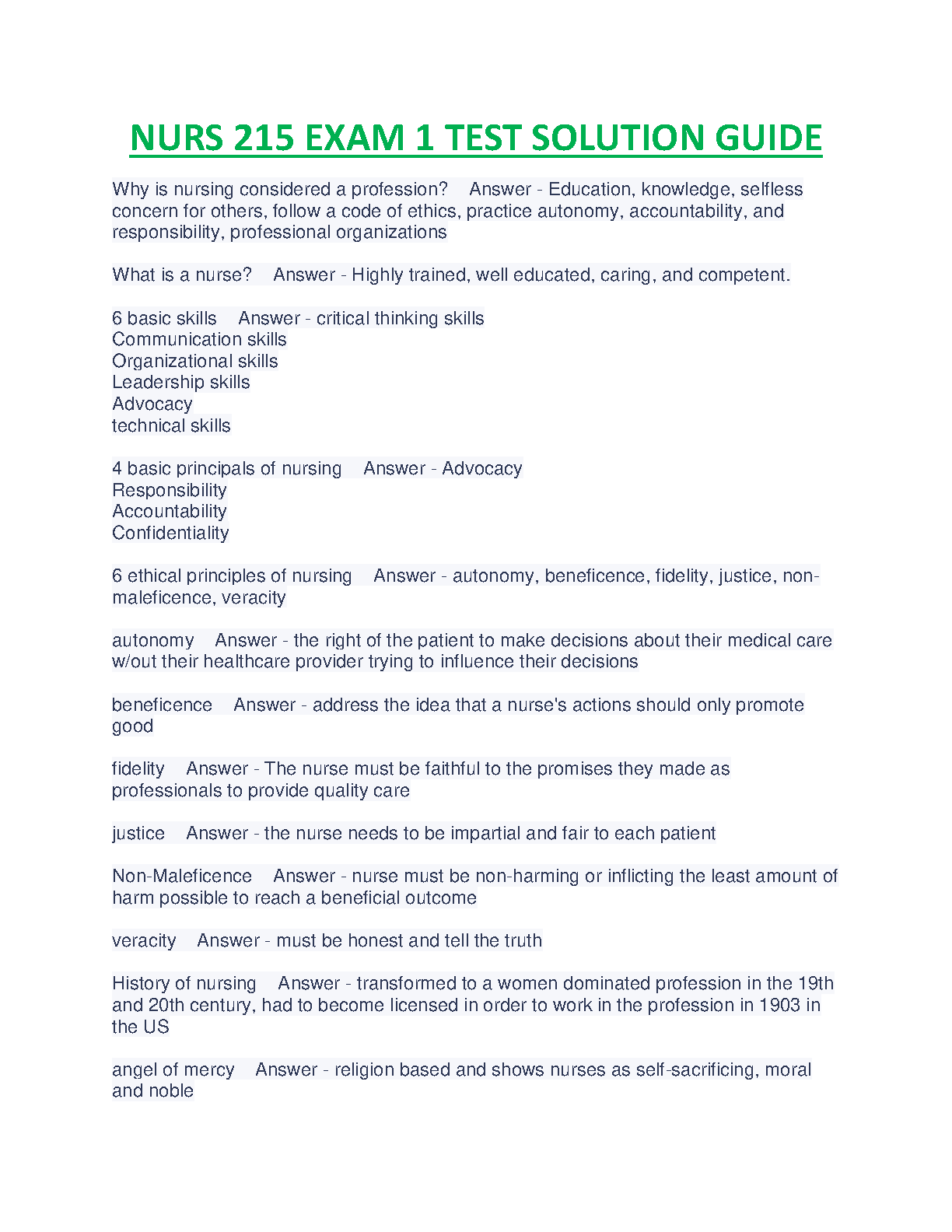 Ace your NURS 215 Exam 1 with this comprehensive test solution guide, designed to help you understand key concepts and ace your exam on the first attempt, avoiding resits. This guide covers all the essential topics, providing insights and answers to common exam questions.