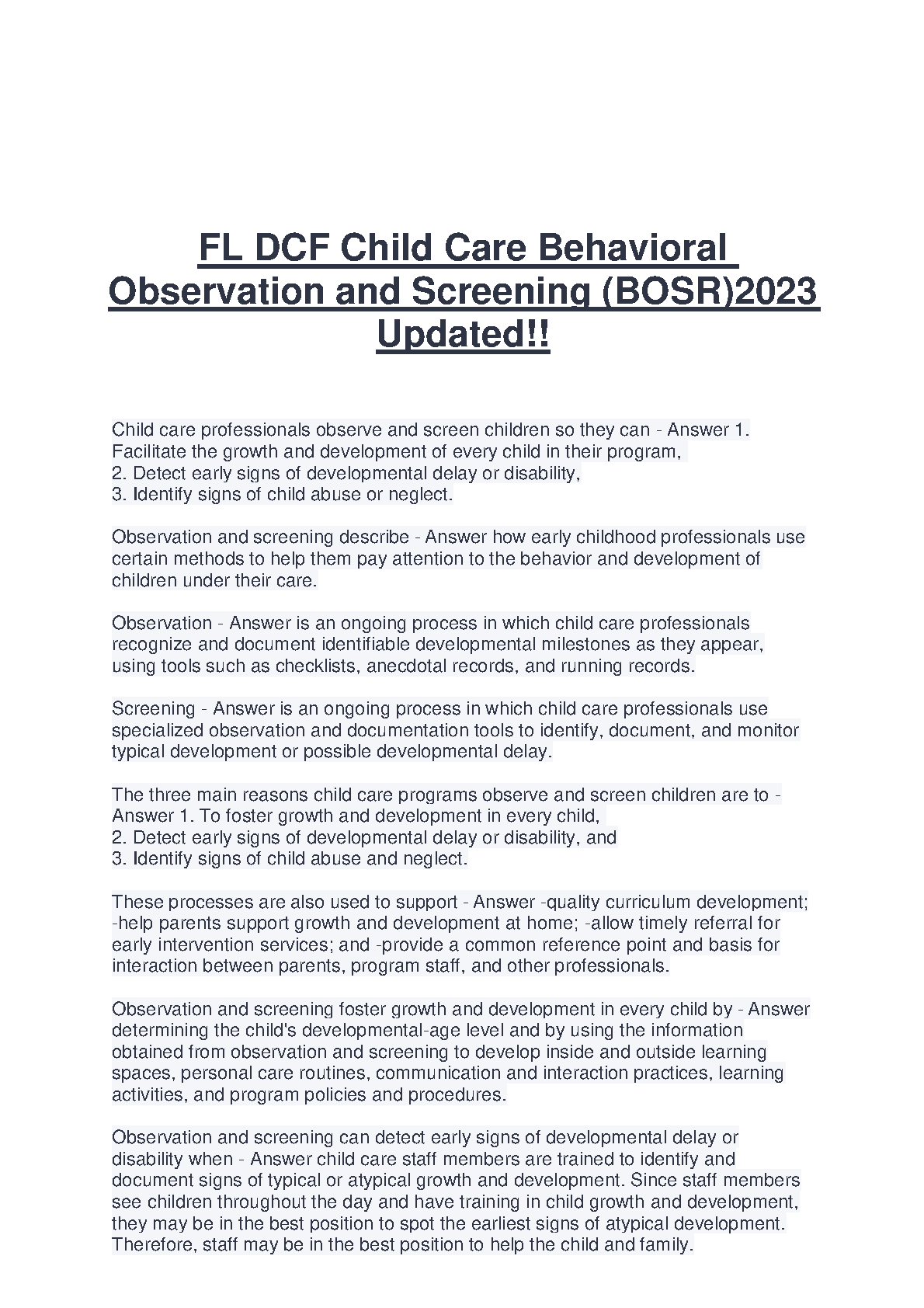 FL DCF Child Care Behavioral Observation and Screening (BOSR) 2023 Updated - A Comprehensive Guide for Early Childhood Professionals