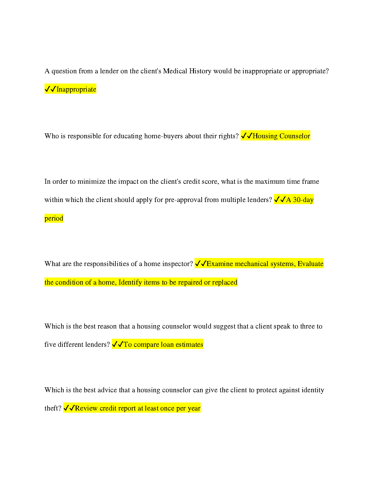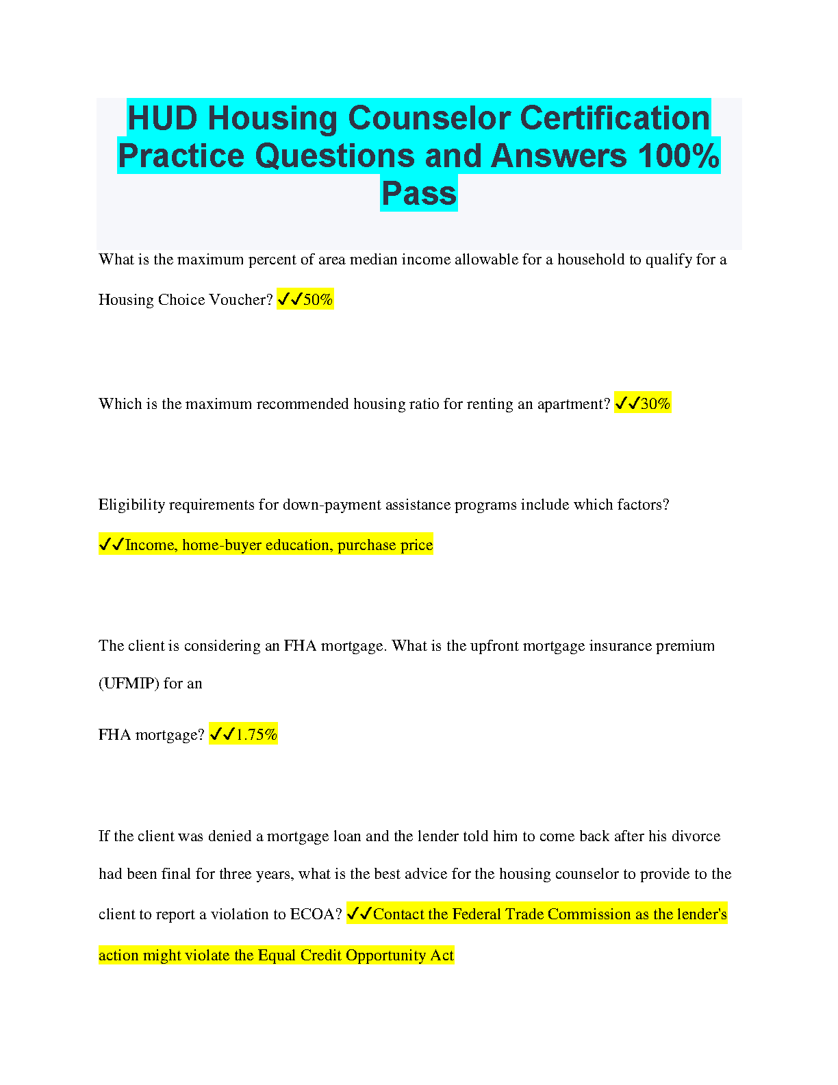 HUD Housing Counselor Certification Practice Questions and Answers 100% Pass: Ace Your Exam with Latest 2024/2025 Edition
