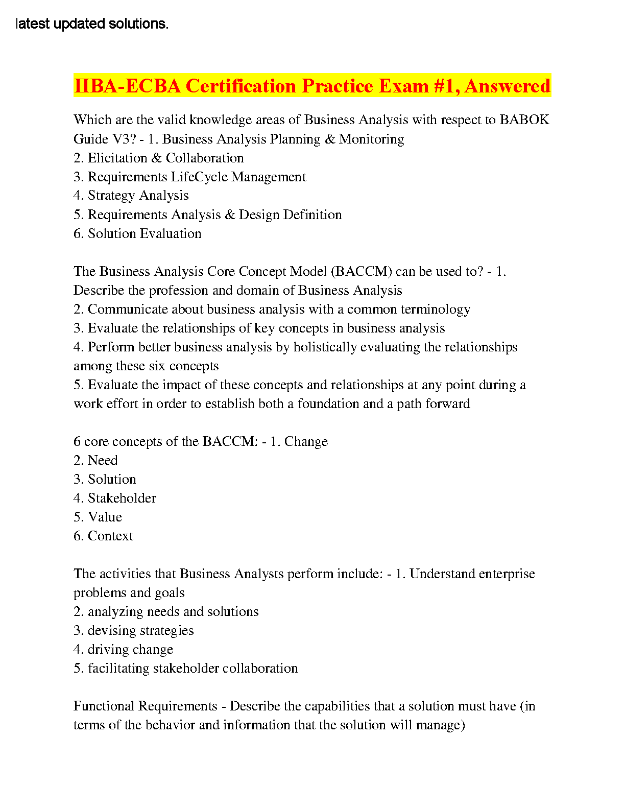 IIBA-ECBA Certification Practice Exam #1, Answered - Guide V3: The Ultimate Guide to Passing Your Exam on the First Attempt - By IIBA