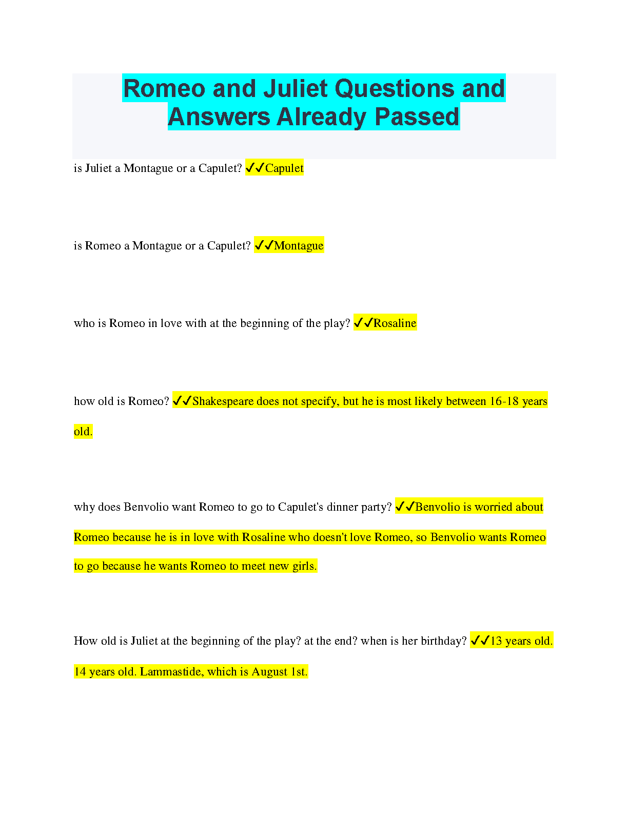 Ace your exams with our "Romeo and Juliet" Questions and Answers guide. This resource is specially designed to help students understand key plot points, characters, and themes in Shakespeare's classic play. This updated edition for 2024-2025 academic year includes detailed answers and insights to help you avoid resits and achieve academic success.