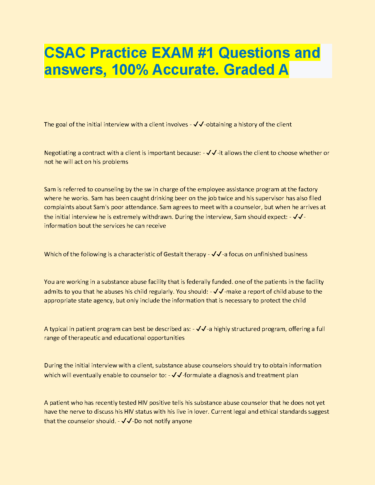 CSAC Practice Exam #1 Questions and Answers, 100% Accurate. Graded A