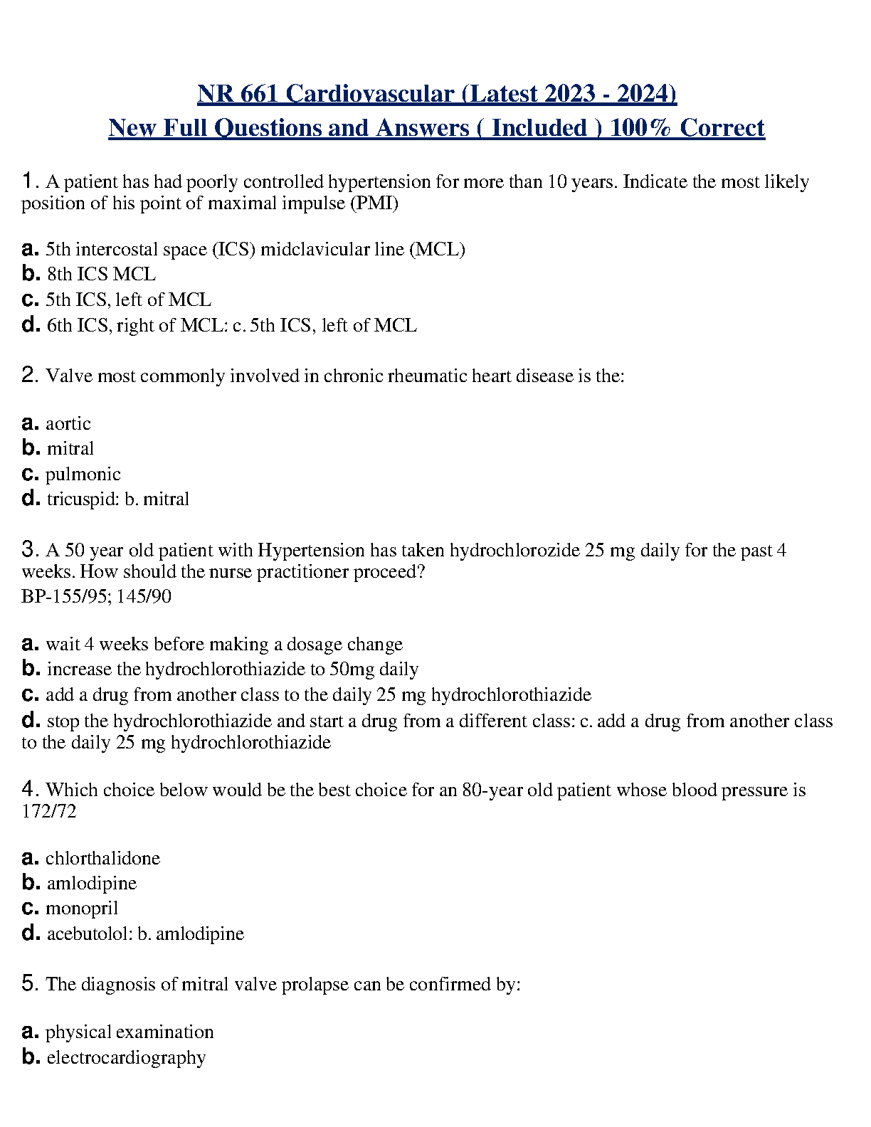 NR 661 Cardiovascular (Latest 2023 - 2024) New Full Questions and Answers (Included) 100% Correct
