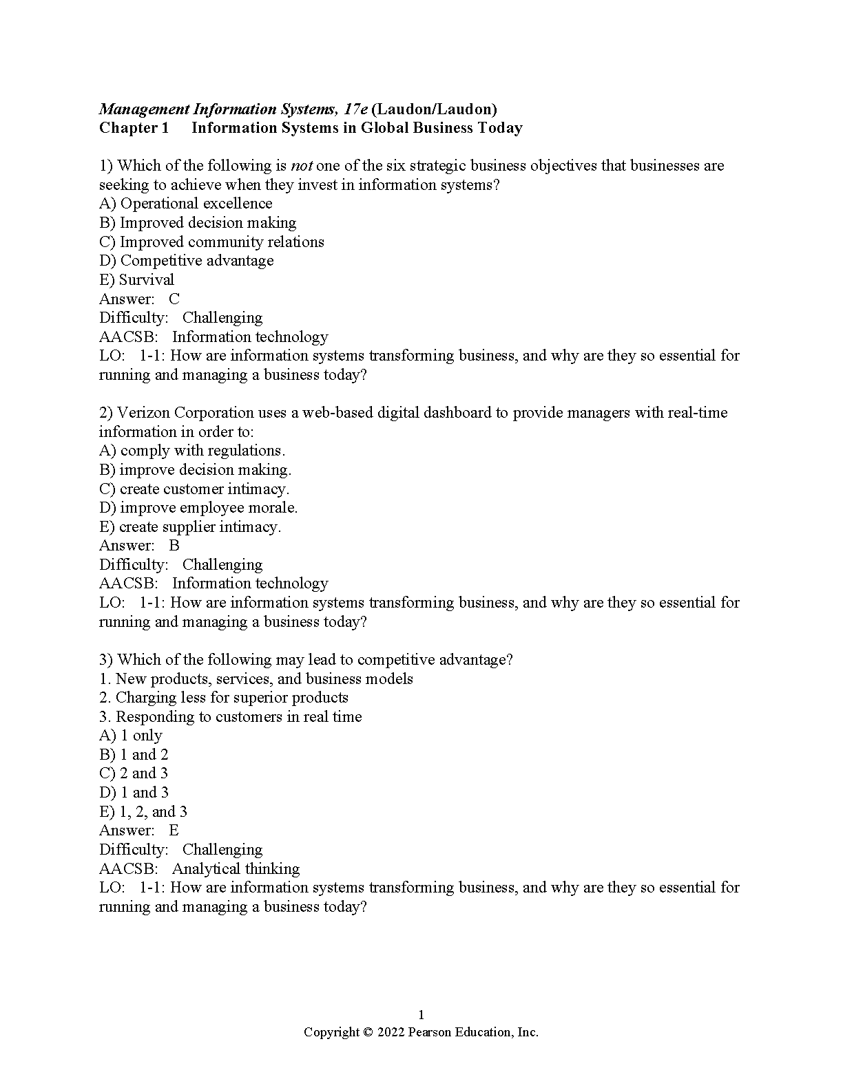 Get ready to ace your MIS exams! This comprehensive test bank for Management Information Systems: Managing the Digital Firm, 17th Edition by Kenneth C. Laudon and Jane P. Laudon, offers a wealth of practice questions to help you master the concepts and prepare for success.