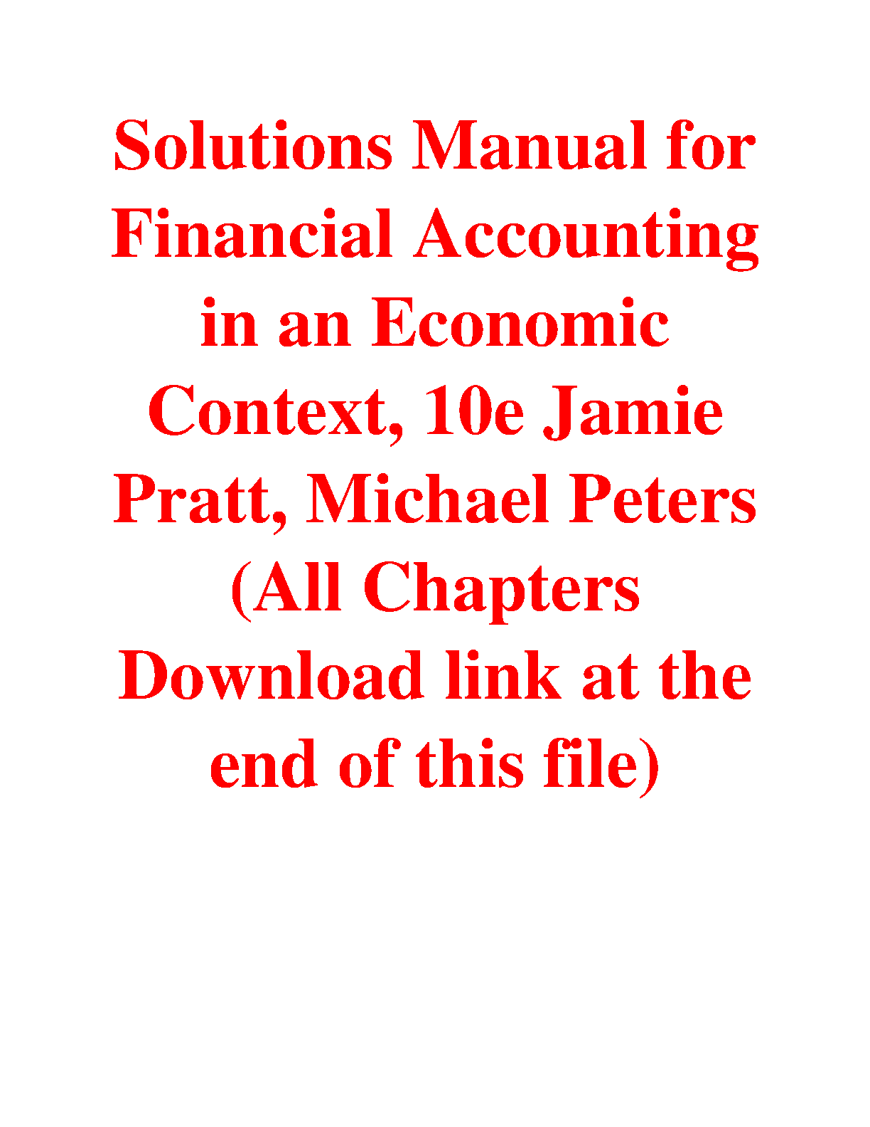 Solutions Manual for Financial Accounting in an Economic Context, 10e by Jamie Pratt & Michael Peters - 2024/2025 Edition