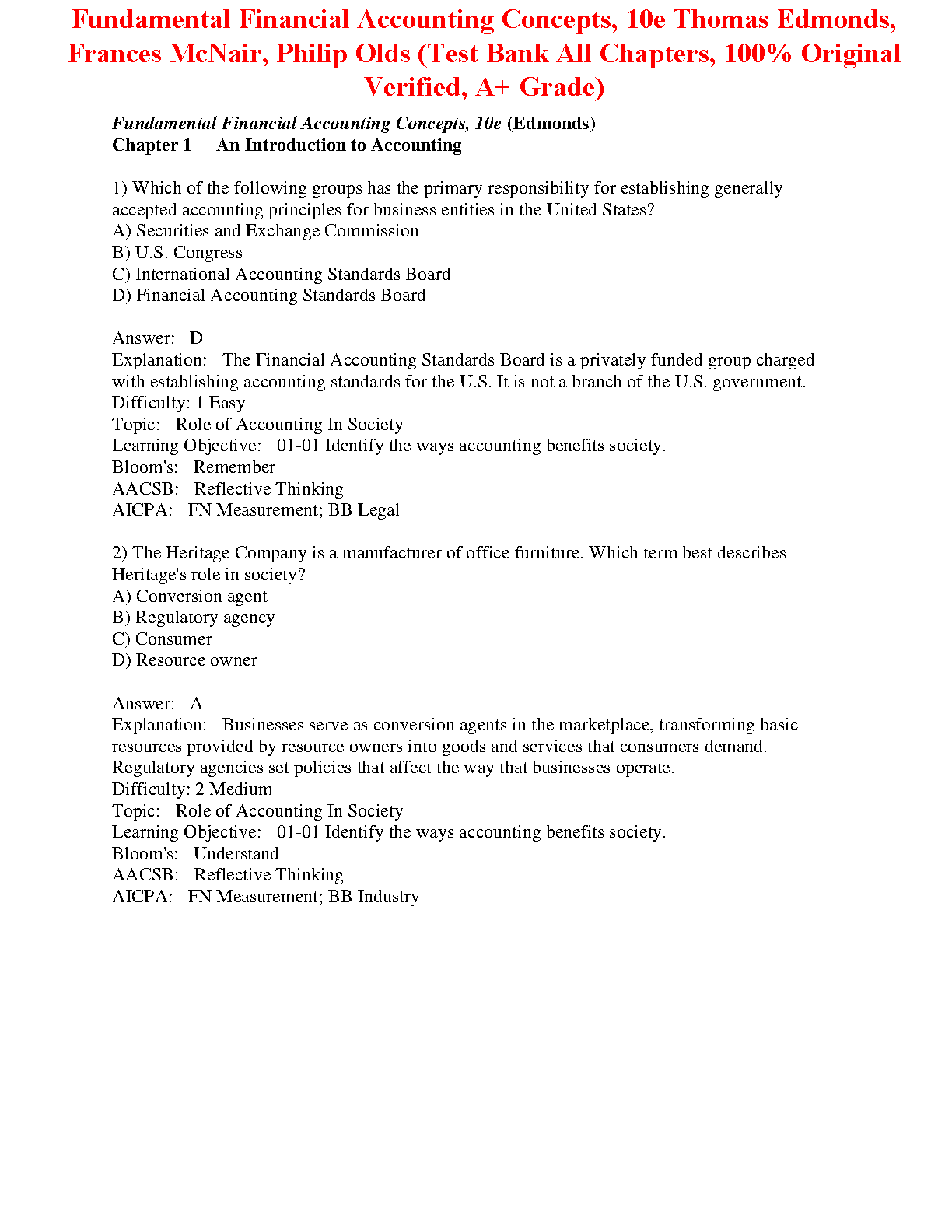 Ace your Financial Accounting course with this comprehensive Test Bank for Fundamental Financial Accounting Concepts, 10e (Edmonds, McNair, Olds). Designed for 2024/2025, this resource provides a wealth of practice questions and answers to help you master the material and avoid resits.