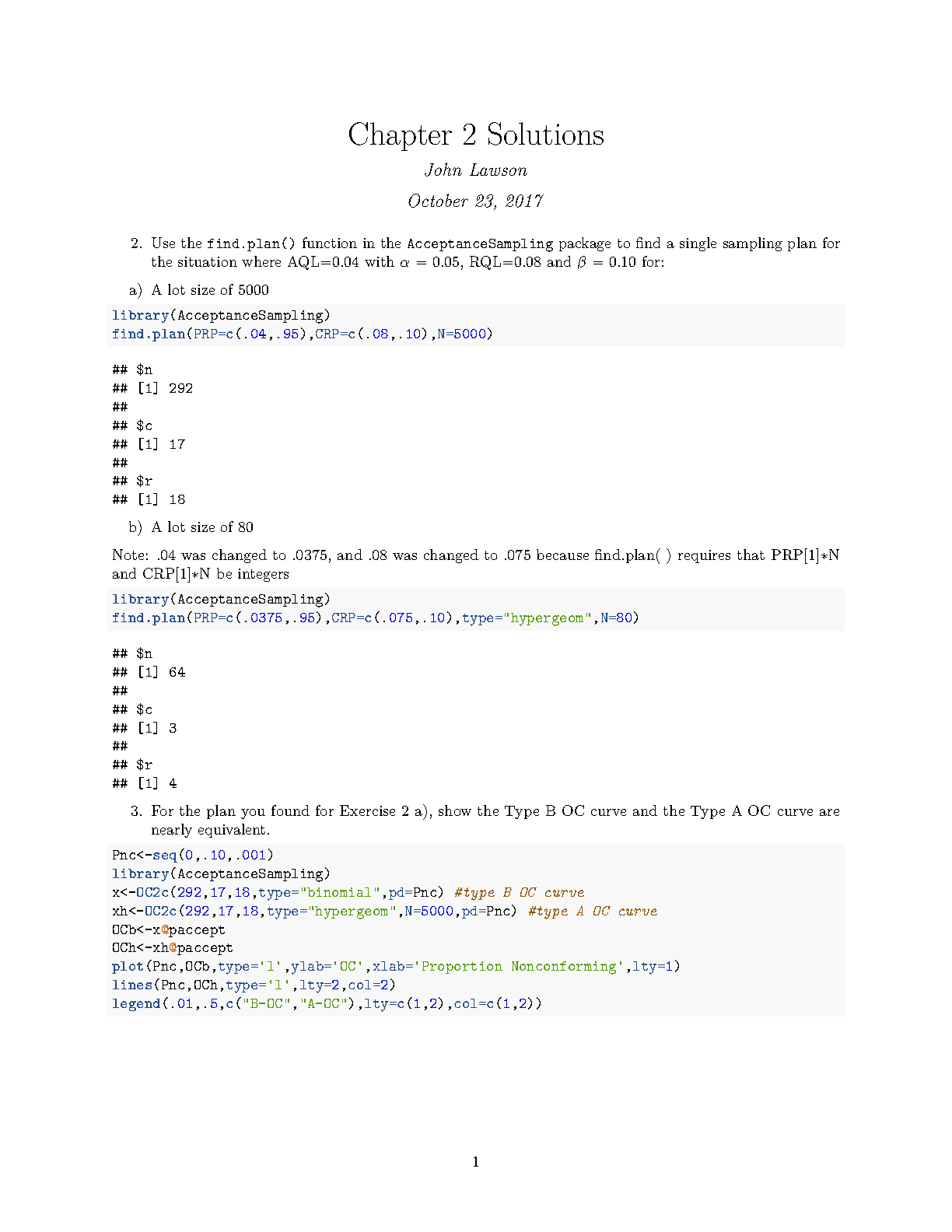 Solutions Manual for An Introduction to Acceptance Sampling and SPC with R - 1st Edition by John Lawson