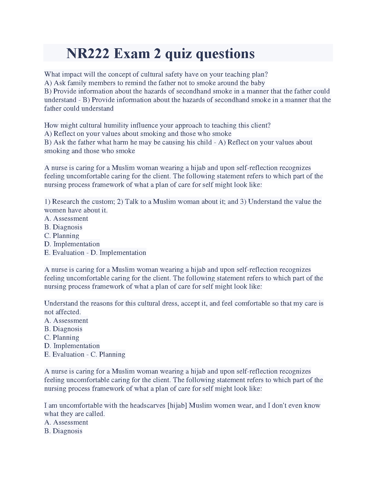 Prepare for your NR222 Exam 2 with this comprehensive quiz questions resource, designed to help you master key concepts and ace your exam on the first attempt.