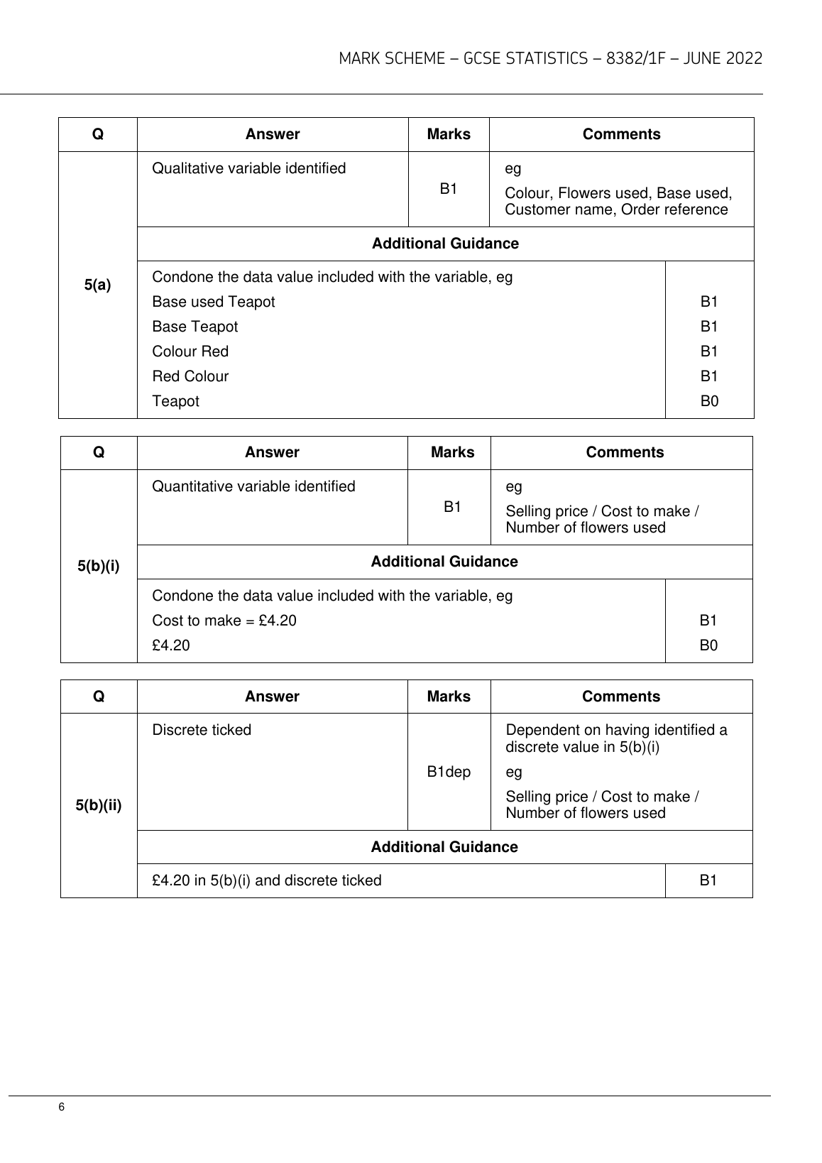 AQA GCSE STATISTICS PAPER 1 JUNE 2022 MARK SCHEME (8382/1F: Foundation Tier)