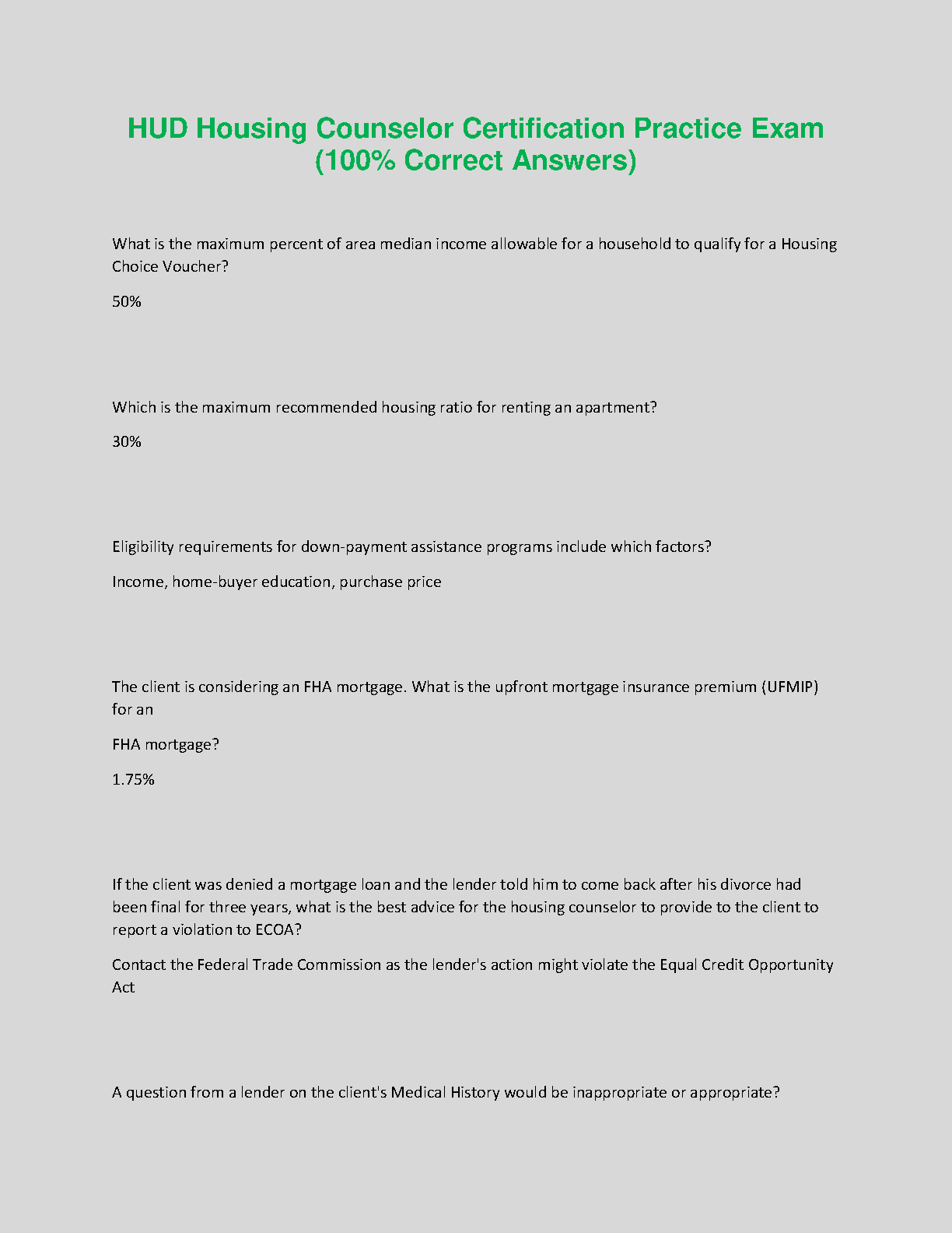 HUD Housing Counselor Certification Practice Exam (100% Correct Answers) - 2024/2025 Edition