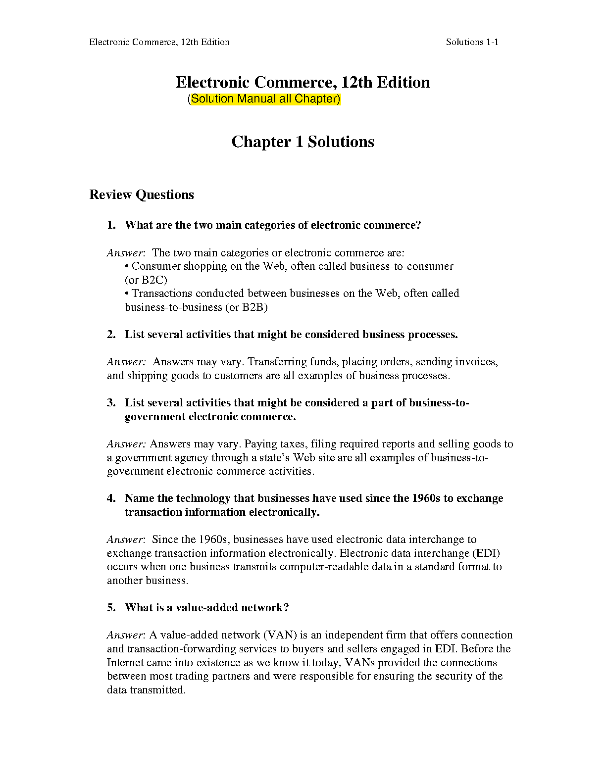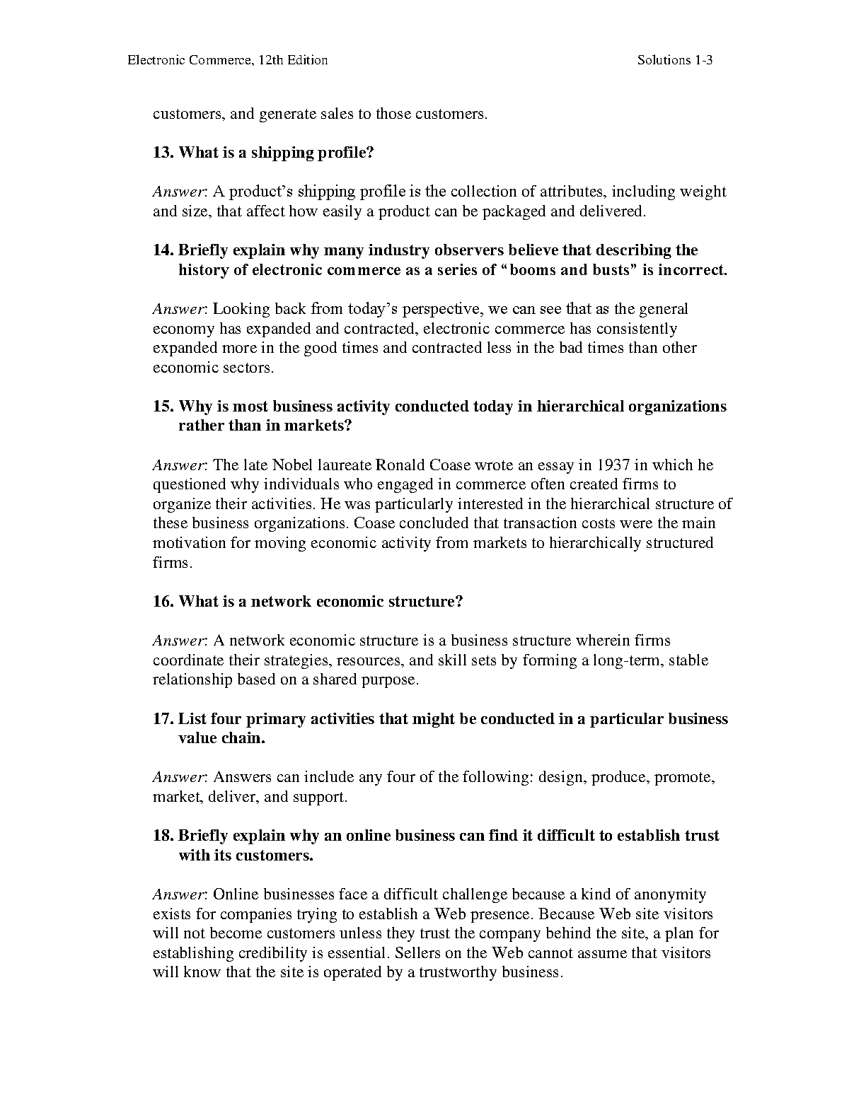 Electronic Commerce 12th Edition Solutions Manual by Kenneth C. Laudon and Jane P. Laudon is a valuable resource for students looking for comprehensive solutions to the textbook's end-of-chapter review questions.