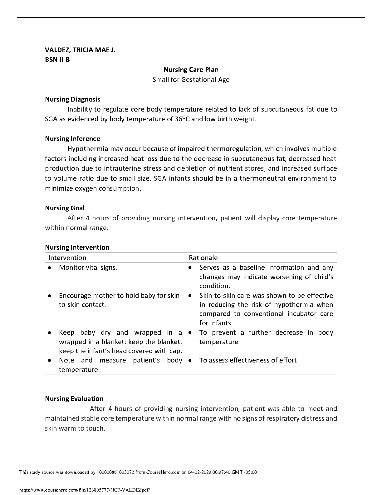 Nursing Care Plan for Small for Gestational Age: A Guide for Success in 2024/2025