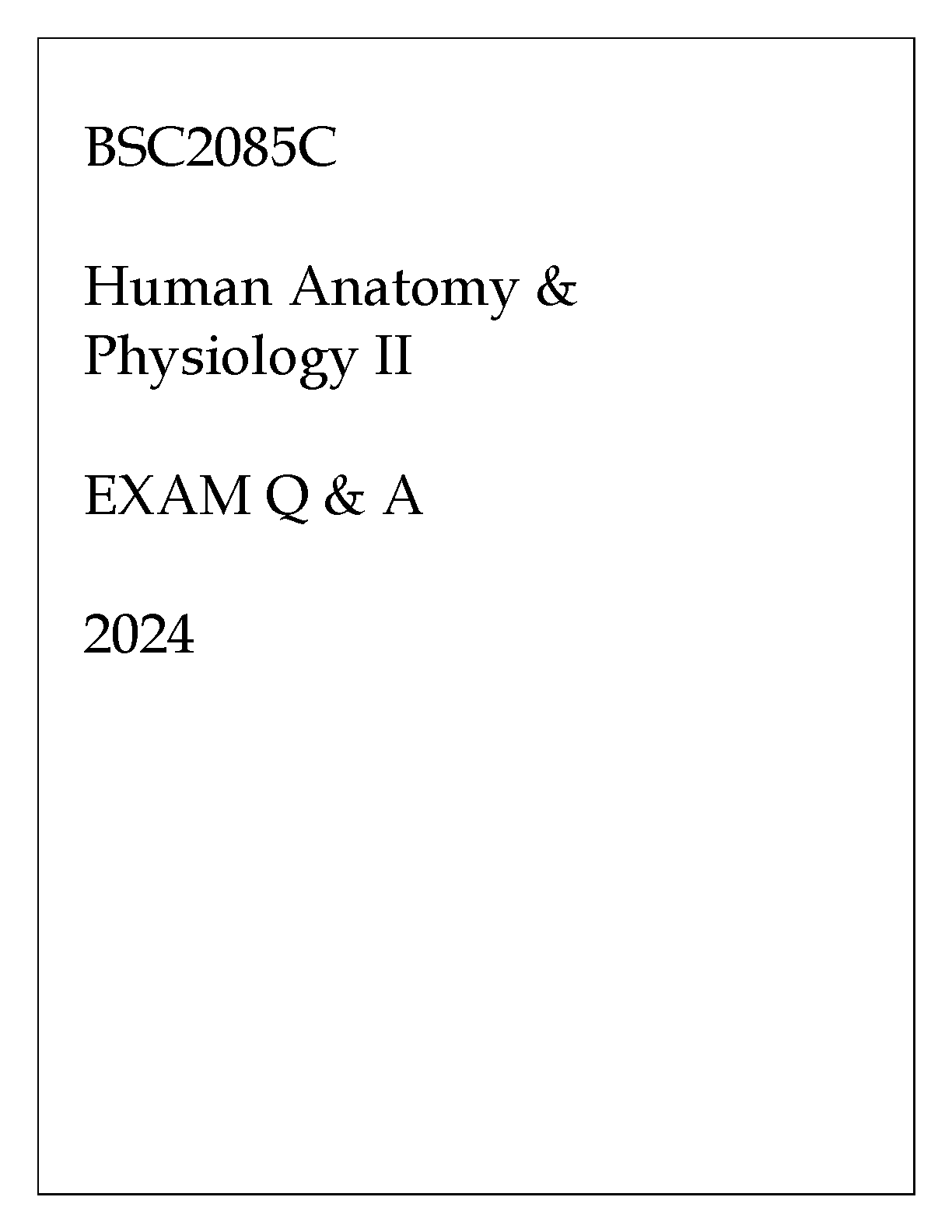 BSC2085C Human Anatomy & Physiology II Exam Q & A 2024 Edition: Pass Your Exam on the First Attempt