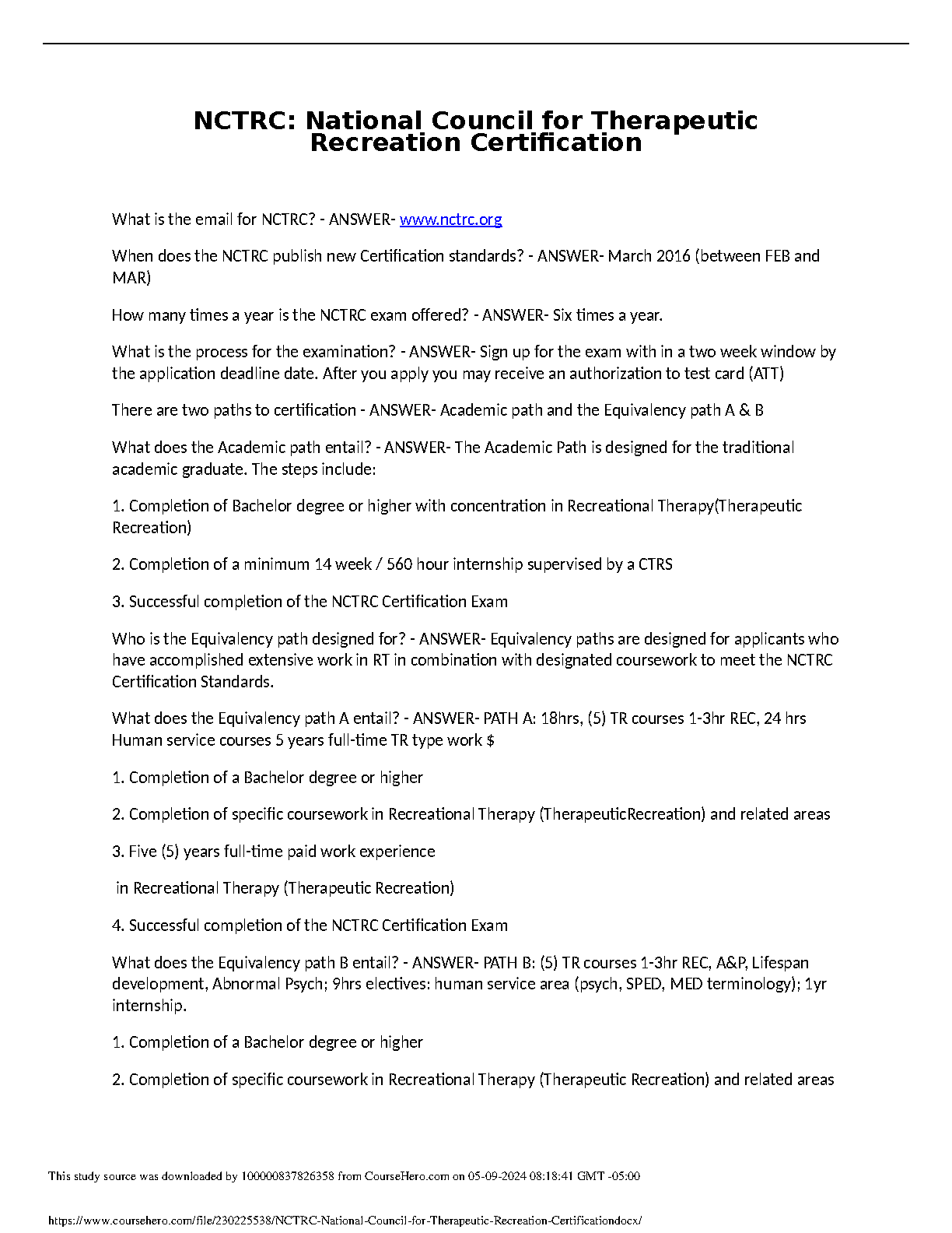 NCTR: National Council for Therapeutic Recreation Certification - Passing the NCTR Certification Exam First Time