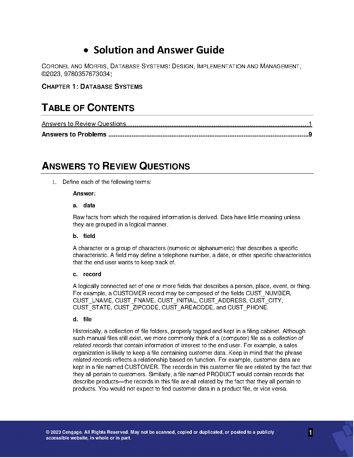 Database Systems: Design, Implementation, & Management, 14th Edition Solutions Manual by Carlos Coronel and Steven Morris