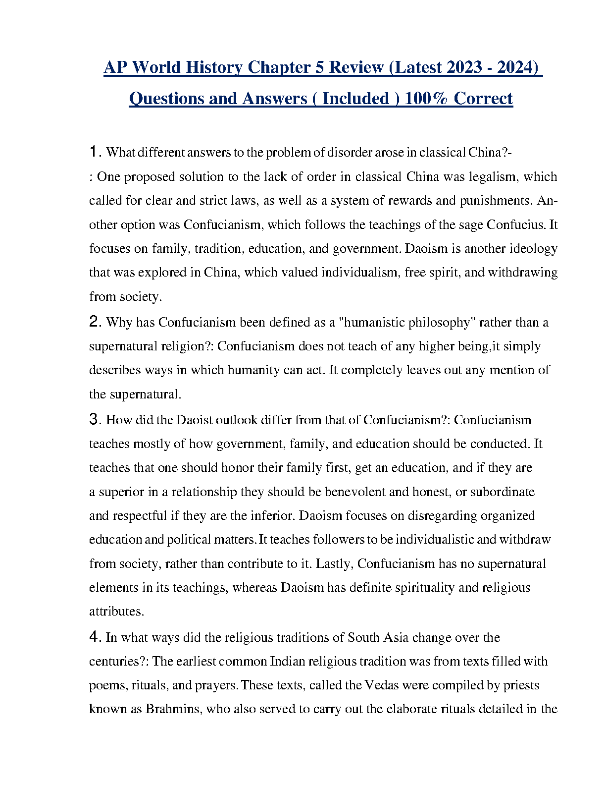 AP World History Chapter 5 Review (Latest 2023-2024) - Questions and Answers by [Book Author] (100% Correct)