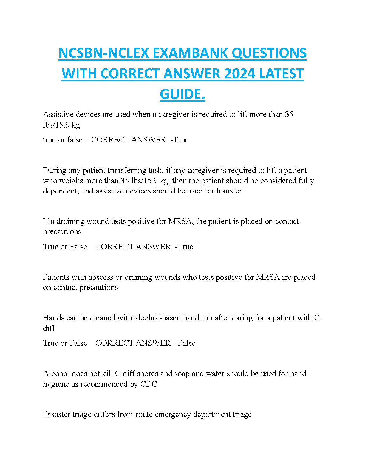 NCSBN-NCLEX Exam Bank Questions with Correct Answer 2024 Latest Guide