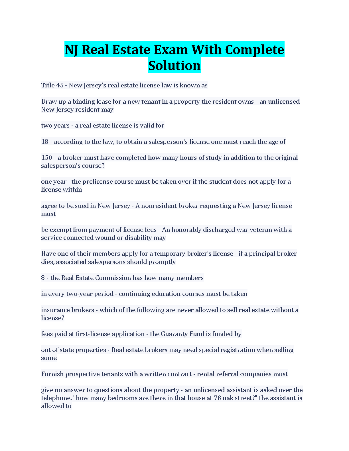 New Jersey Real Estate Exam with Complete Solution by Author 1, Author 2, Author 3 - 2024/2025 Edition