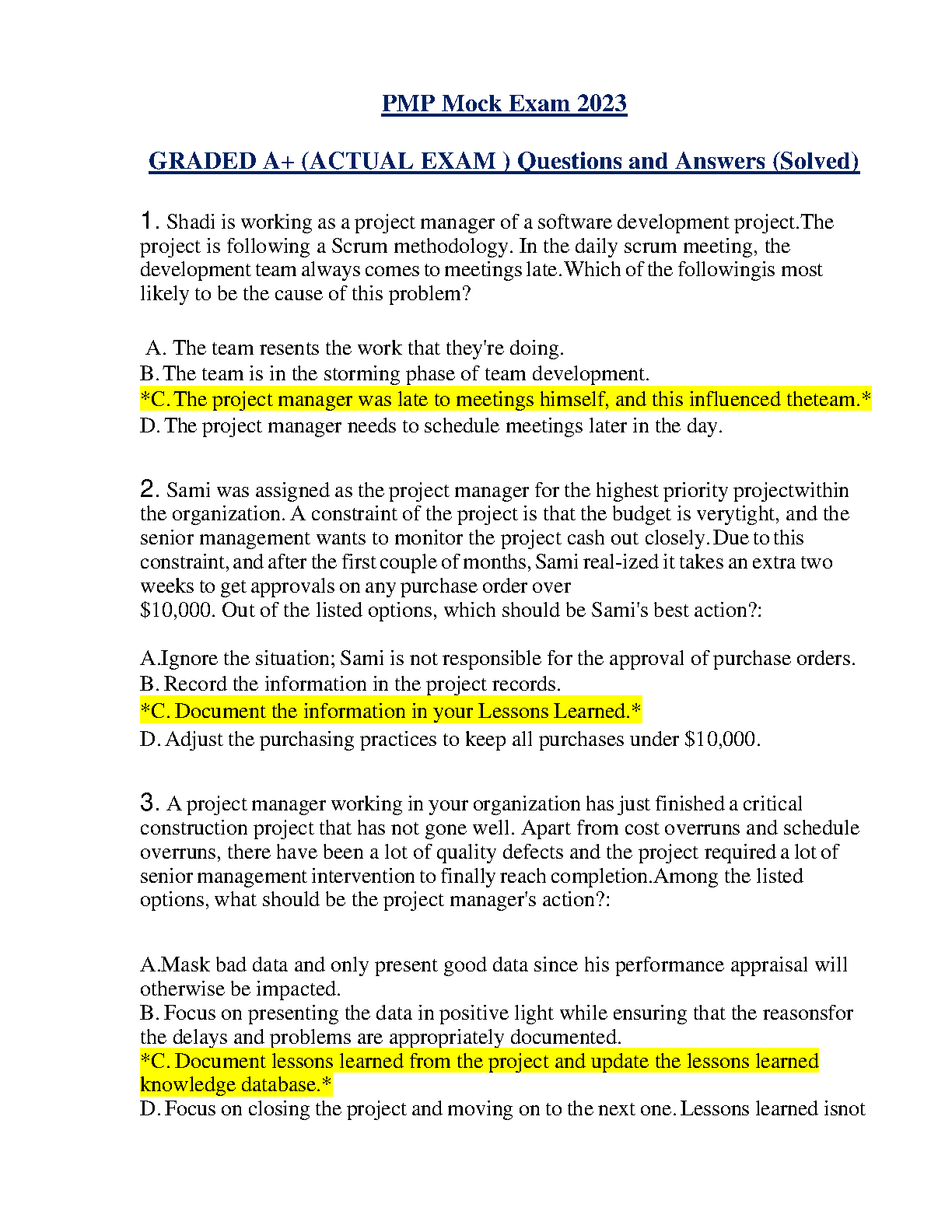 PMP Mock Exam 2023 - Graded A+ (Actual Exam) Questions and Answers (Solved) by Unknown Author