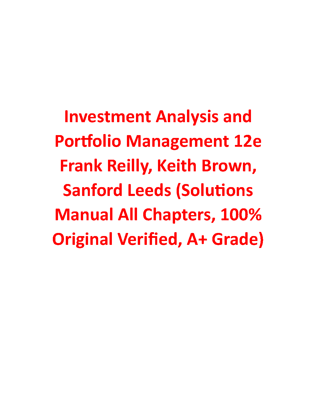 Investment Analysis and Portfolio Management 12e by Frank Reilly, Keith Brown, Sanford Leeds - Solutions Manual - All Chapters - 100% Verified