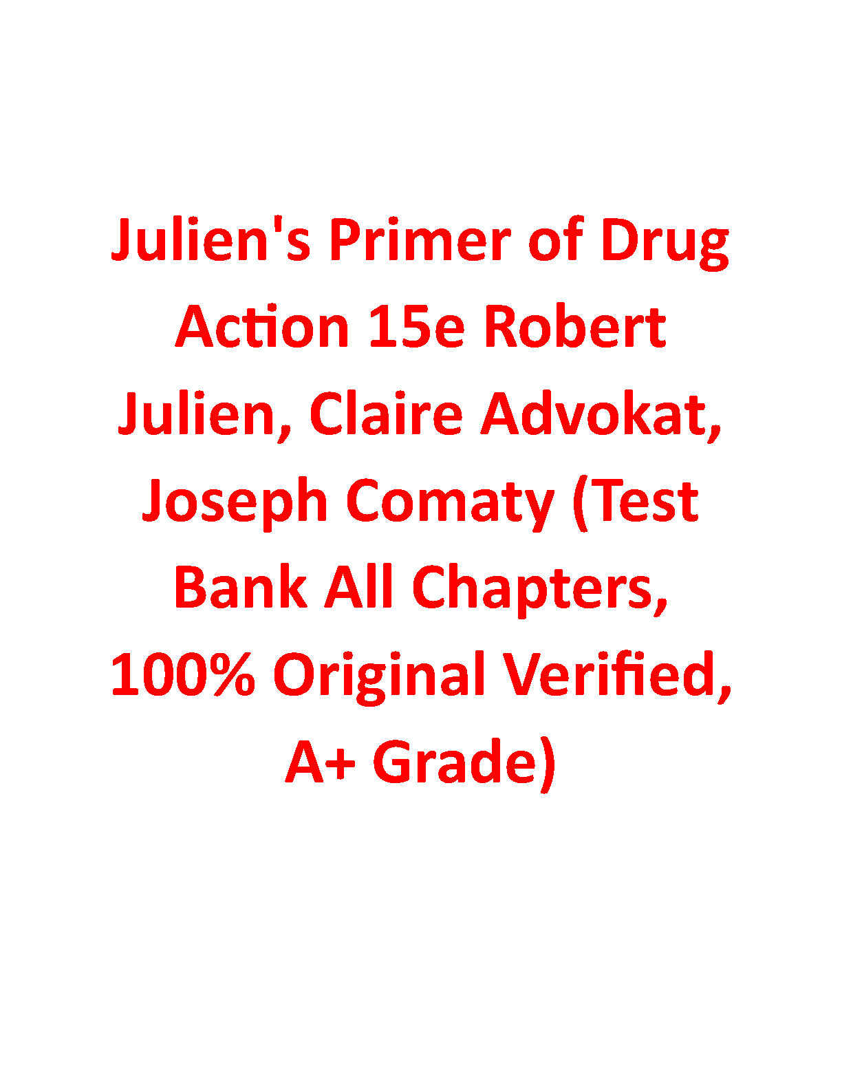 Julien's Primer of Drug Action 15e Robert Julien, Claire Advokat, Joseph Comaty Test Bank: All Chapters, 100% Original Verified, A+ Grade
