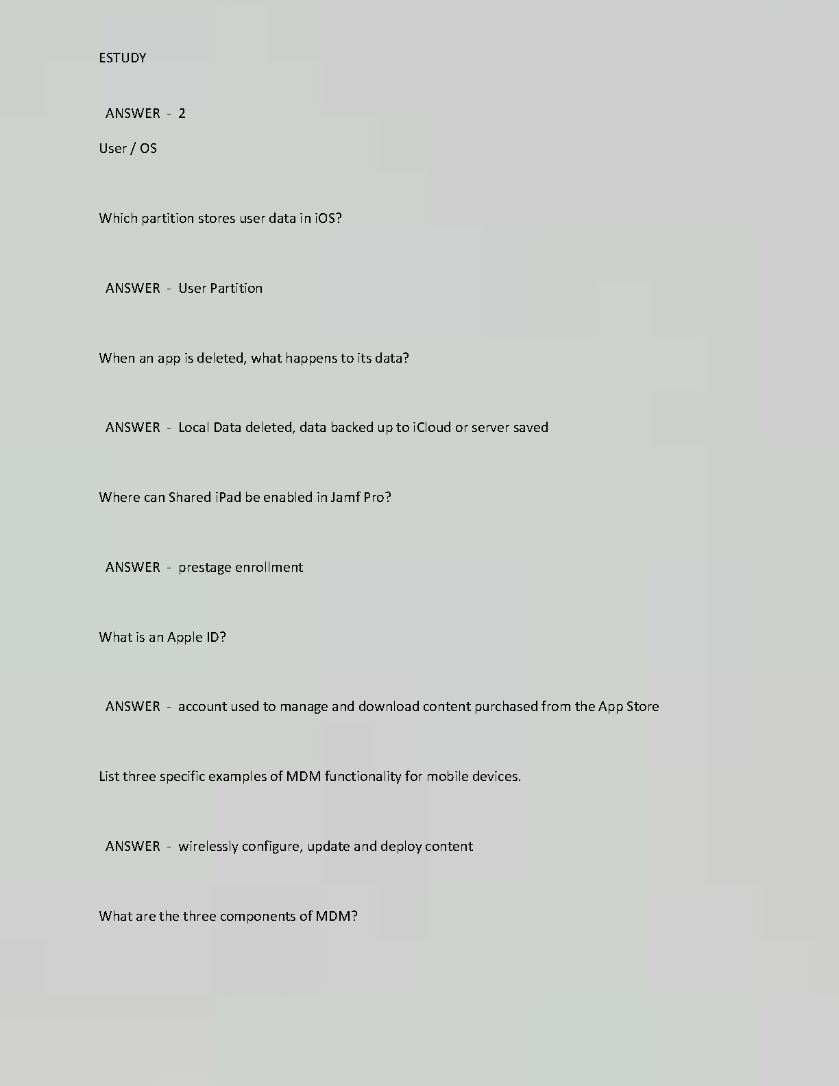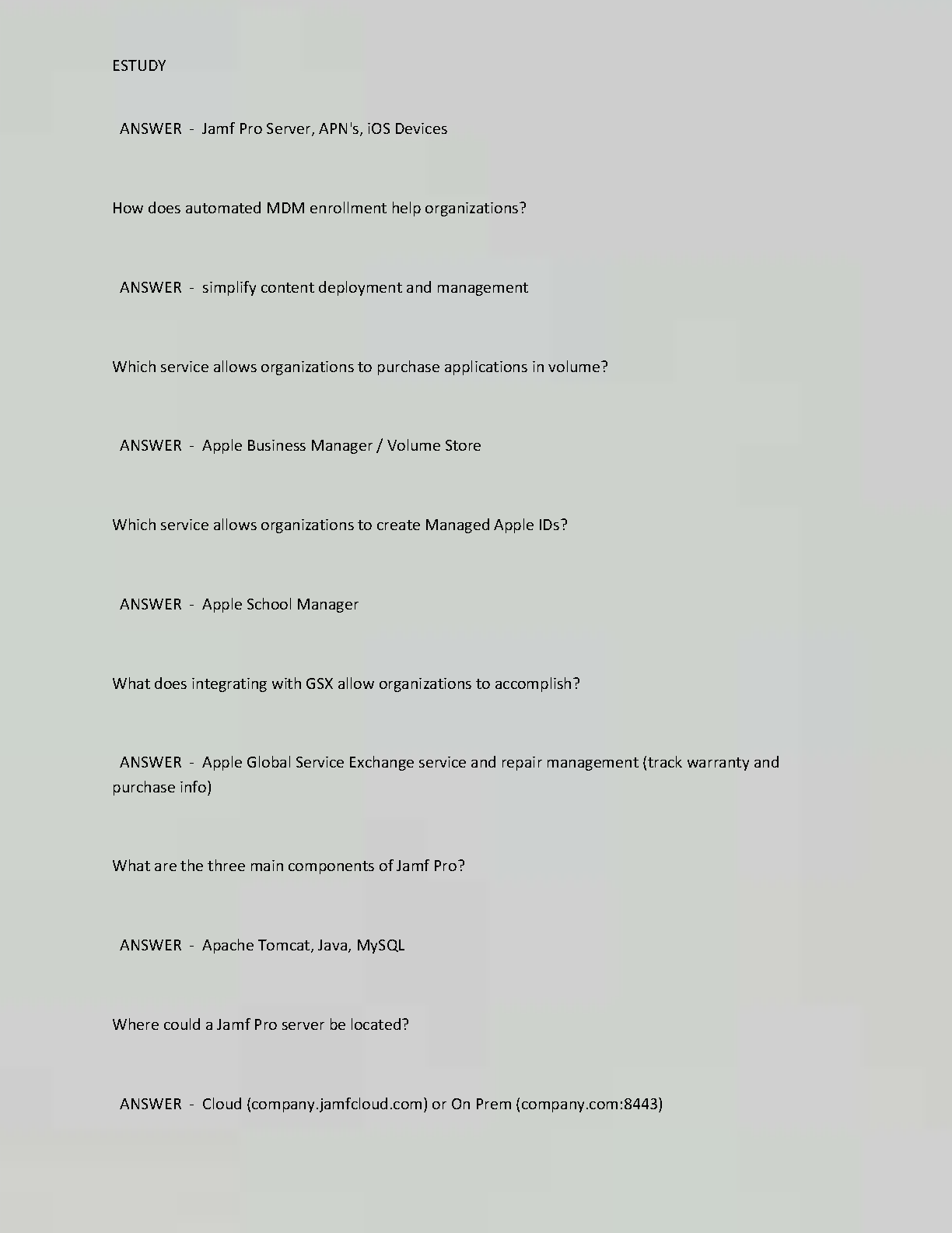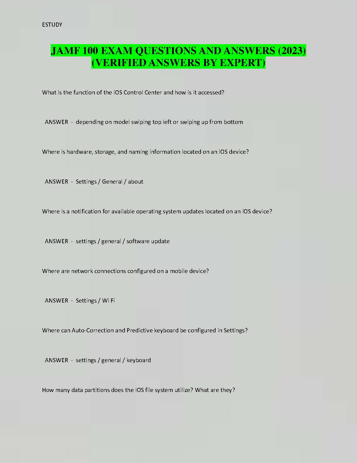 Ace your JAMF 100 exam with this comprehensive set of exam questions and answers. This resource covers all key concepts and provides verified answers to ensure you're fully prepared for your exam. Don't risk a resit, get your first attempt right!