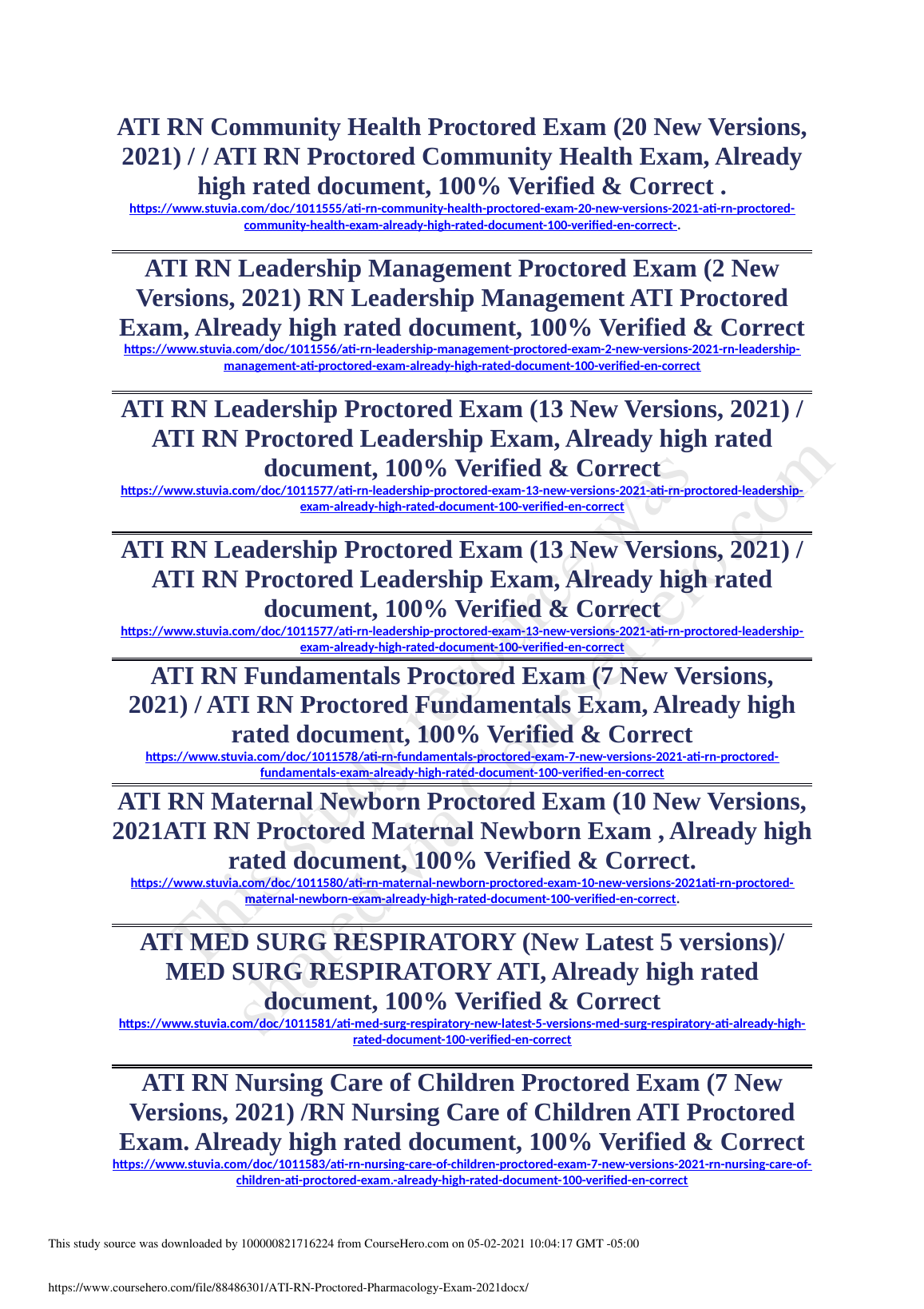 ATI Proctored Pharmacology Exam (Detail Solutions and Resource for the test) GRADED A+