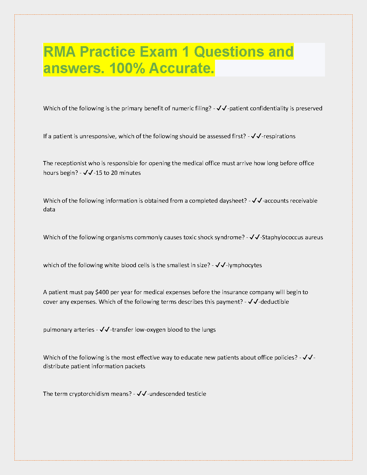 RMA Practice Exam 1 Questions and Answers - 100% Accurate - Edition 2024/2025