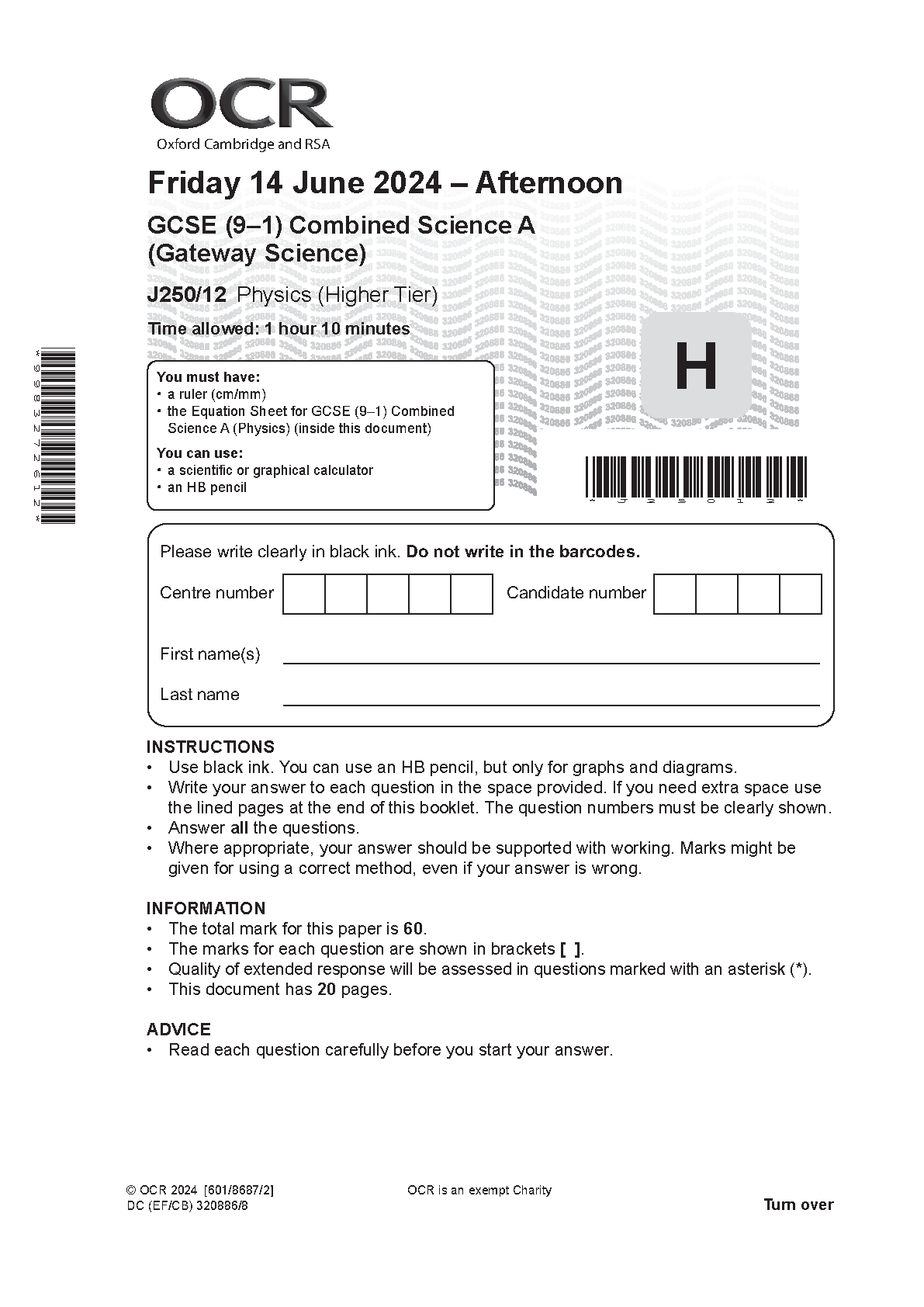 2024 OCR GCSE Combined Science A Paper 12 (J260/12: Chemistry A (Higher Tier Tier))