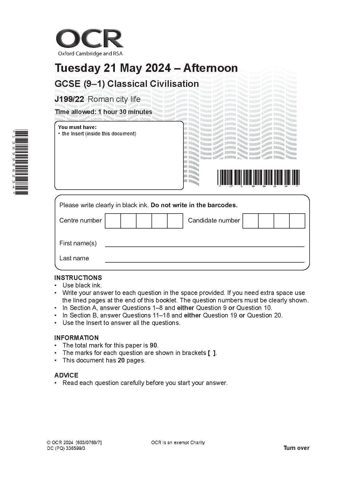 OCR GCSE CLASSICAL CIVILISATION QUESTION PAPER 22 2024 (J199/22: Roman city life).