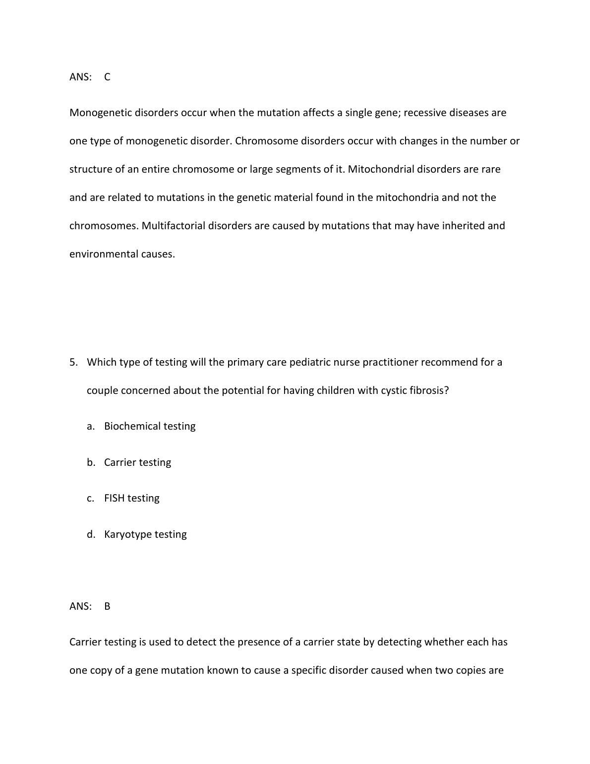 NSG 6435 Burns TEST BANK: Pediatric Primary Care, Genetic Disorders: Questions and Answers with Explanations, 100% Correct, GRADED A+ . DOWNLOAD on www.hackedexams.com INSTANTLY.