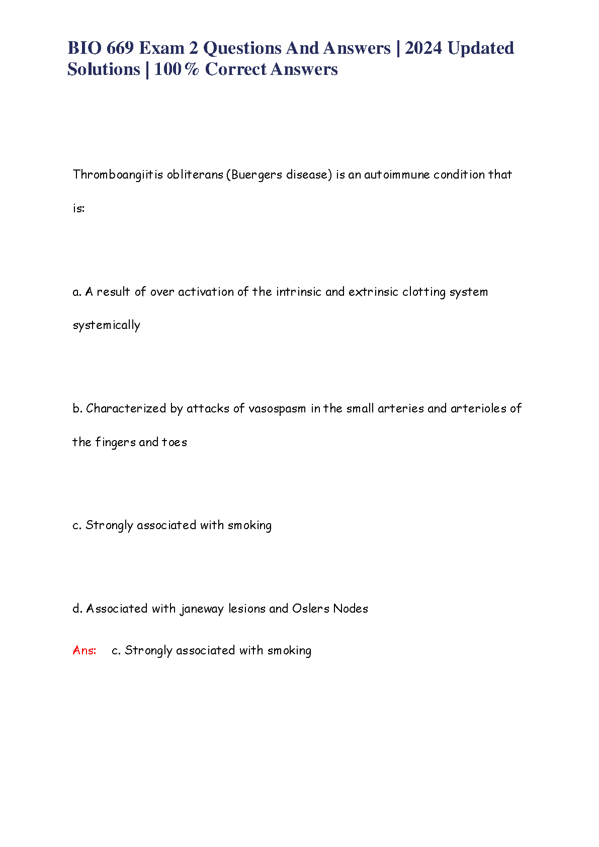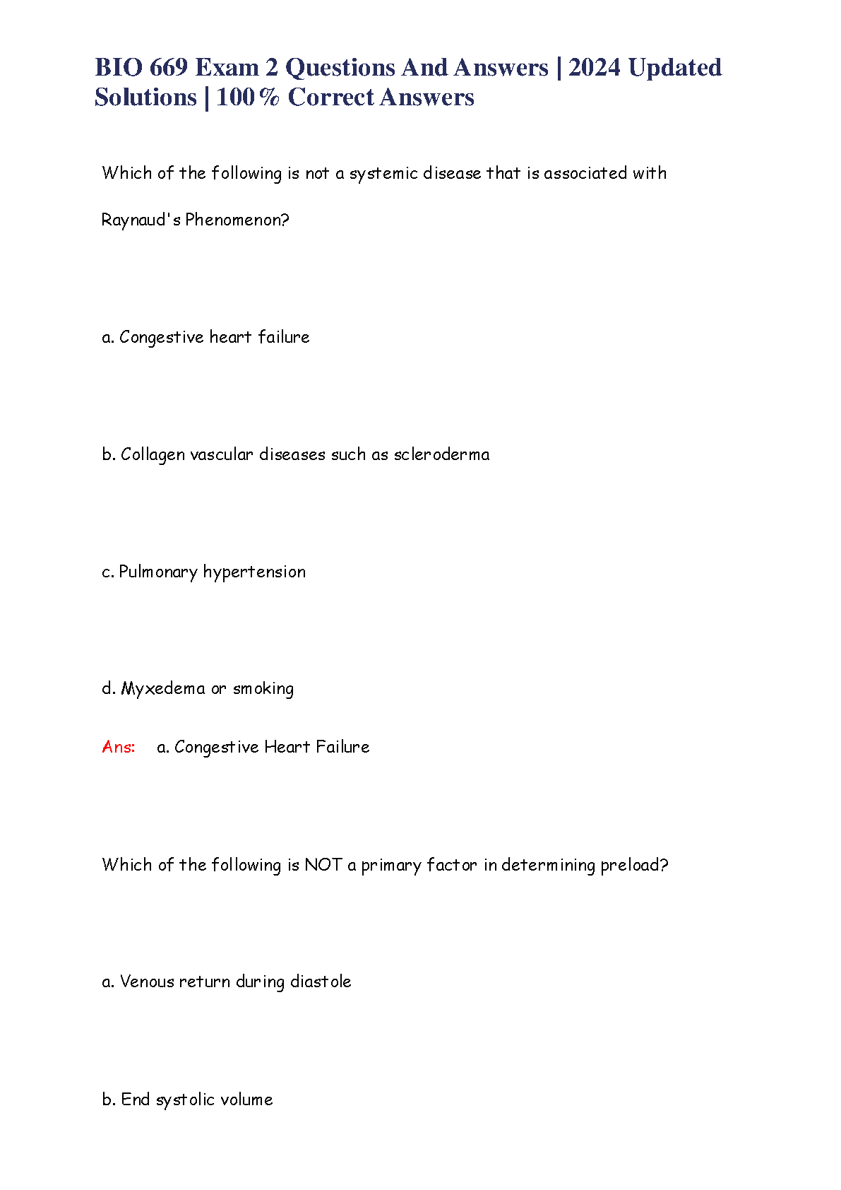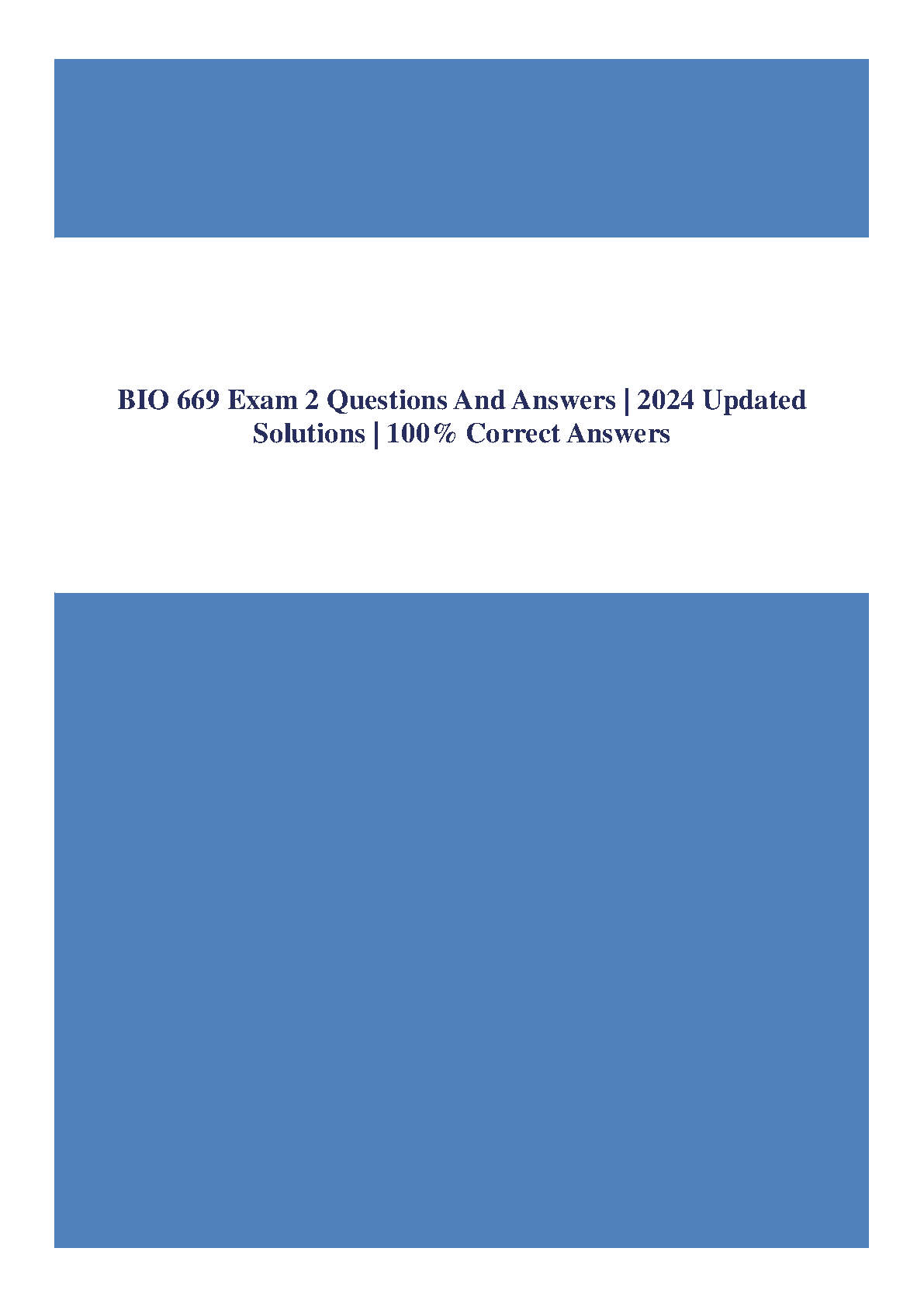 Ace your BIO 669 Exam 2 with this updated 2024 solutions manual. 100% correct answers guaranteed to help you avoid resits and pass on your first attempt. Perfect for students aiming for exam success.