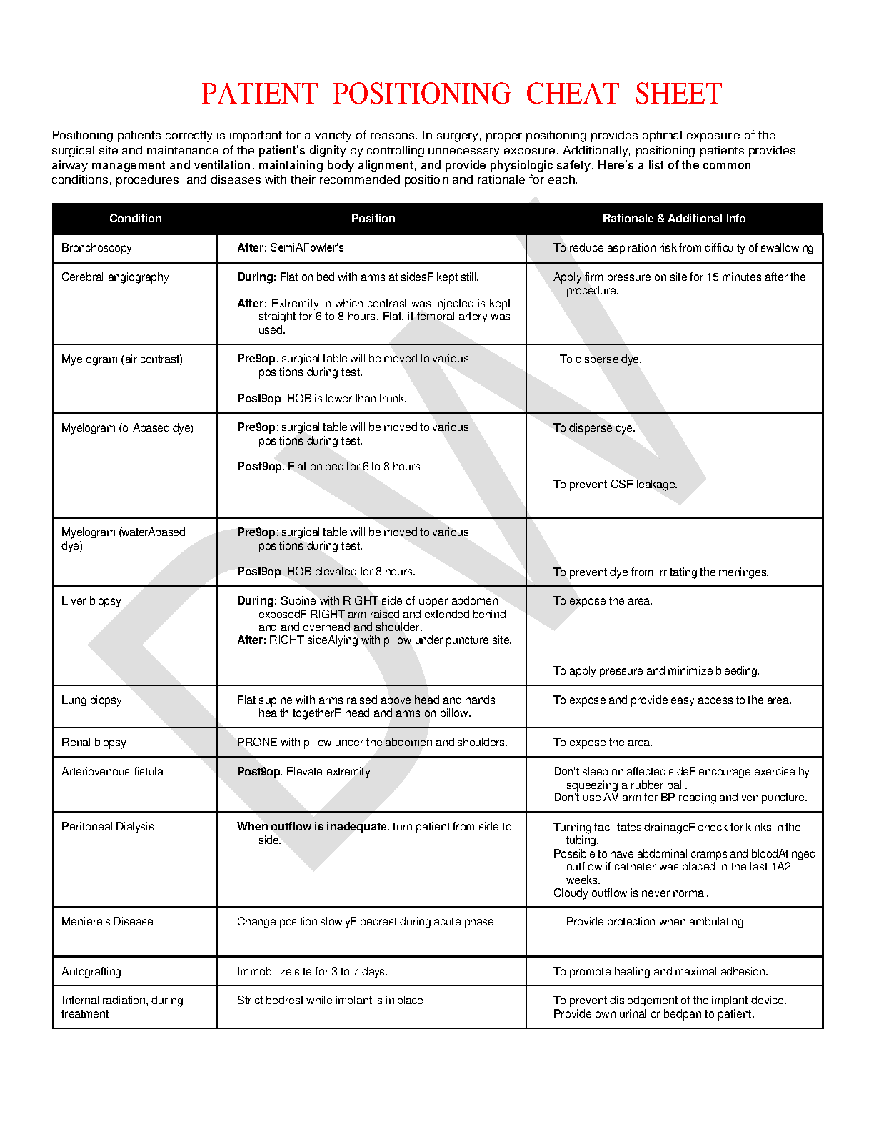 Patient Positioning Cheat Sheet: A Comprehensive Guide for Proper Patient Placement by [Author's Name - if available online, otherwise leave blank]