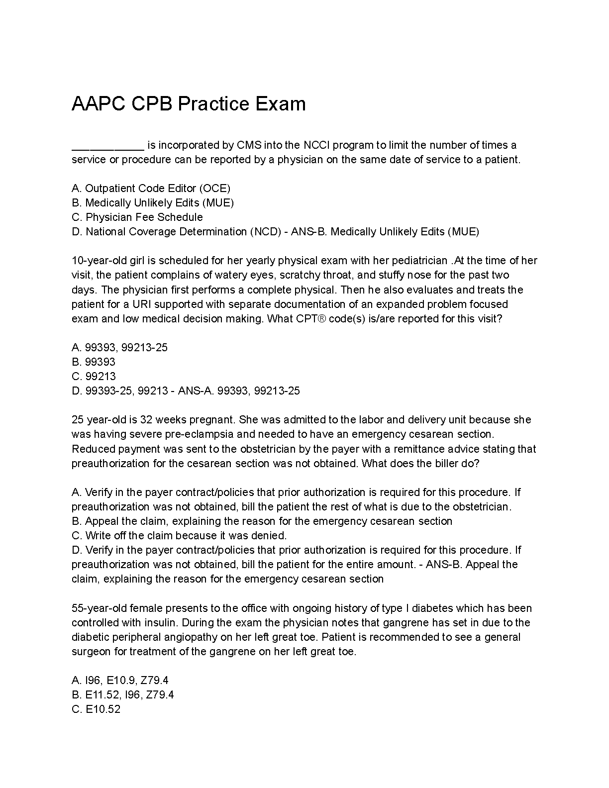 AAPC CPB Practice Exam: Questions and Answers for Medical Billing and Coding Professionals