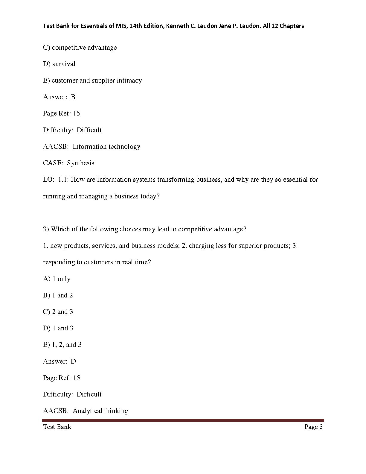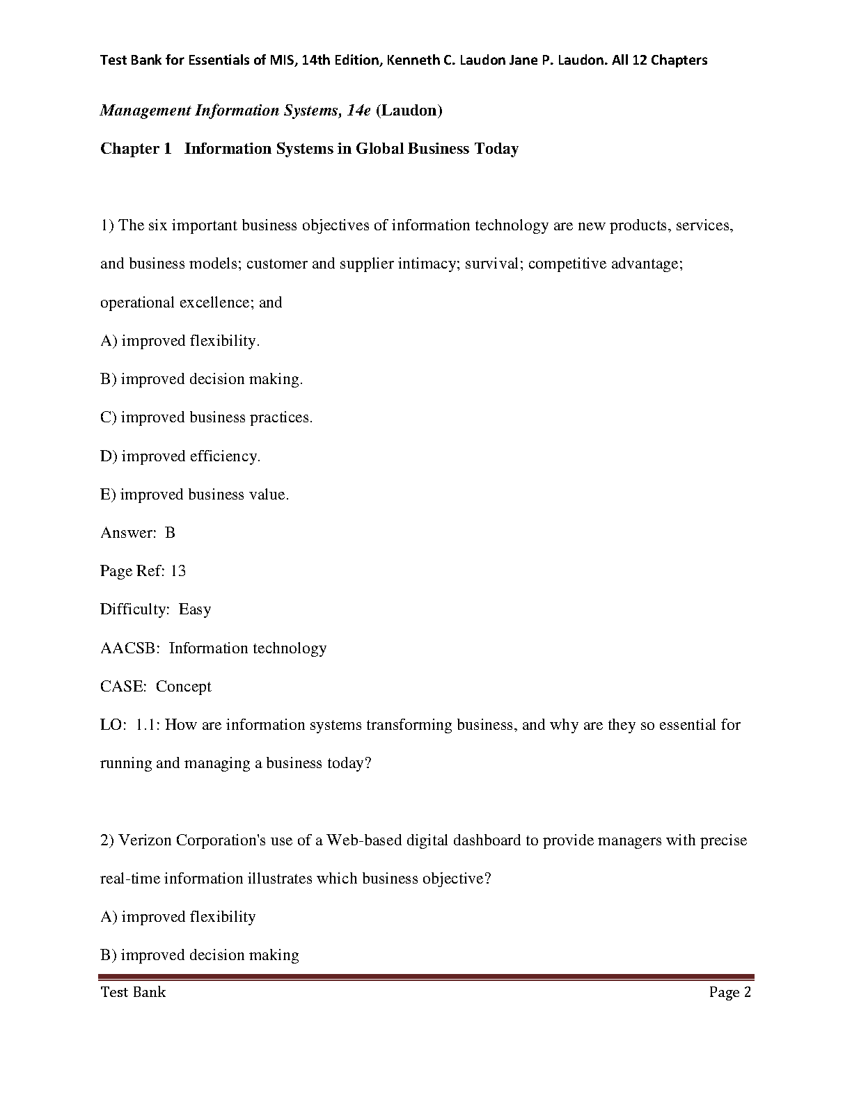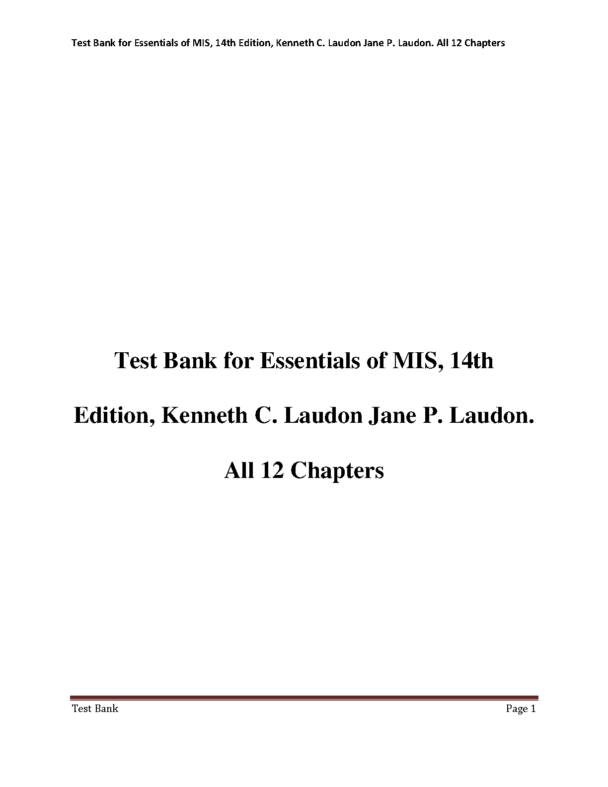 This comprehensive test bank covers all 12 chapters of Essentials of MIS, 14th Edition by Kenneth C. Laudon and Jane P. Laudon. Prepare effectively for your exams and achieve top marks. This resource is designed to help students pass their exams on the first attempt.
