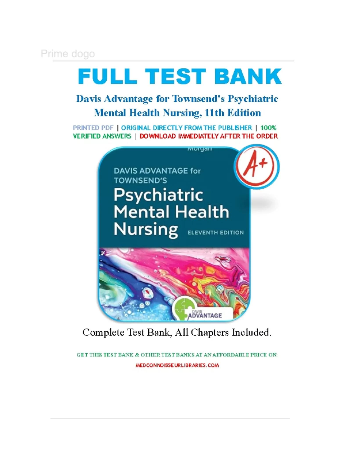 Davis Advantage for Townsend's Psychiatric Mental Health Nursing, 11th Edition: Complete Test Bank by Mary Townsend, Nancy Carol.