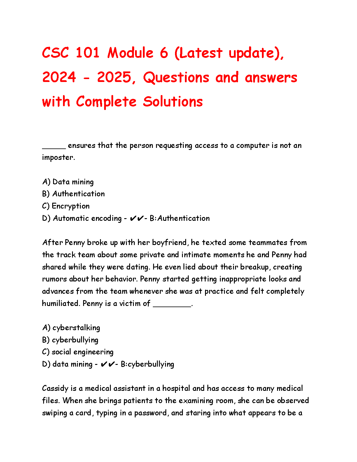 Ace your CSC 101 exams with this comprehensive guide featuring questions and answers for Module 6, updated for the 2024-2025 academic year. This resource is designed to help students master the material and avoid resits.