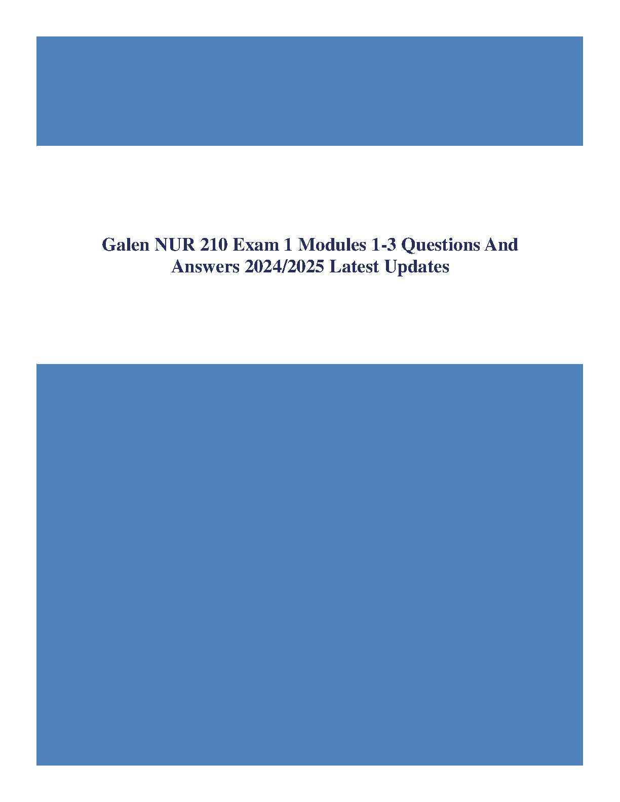 Conquer Galen NUR 210 Exam 1 with confidence! This comprehensive resource covers Modules 1-3, providing you with the questions and answers you need to pass on your first attempt. Updated for the 2024/2025 academic year, this study guide helps you avoid costly resits.