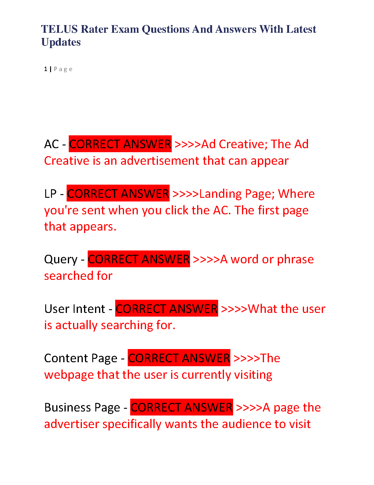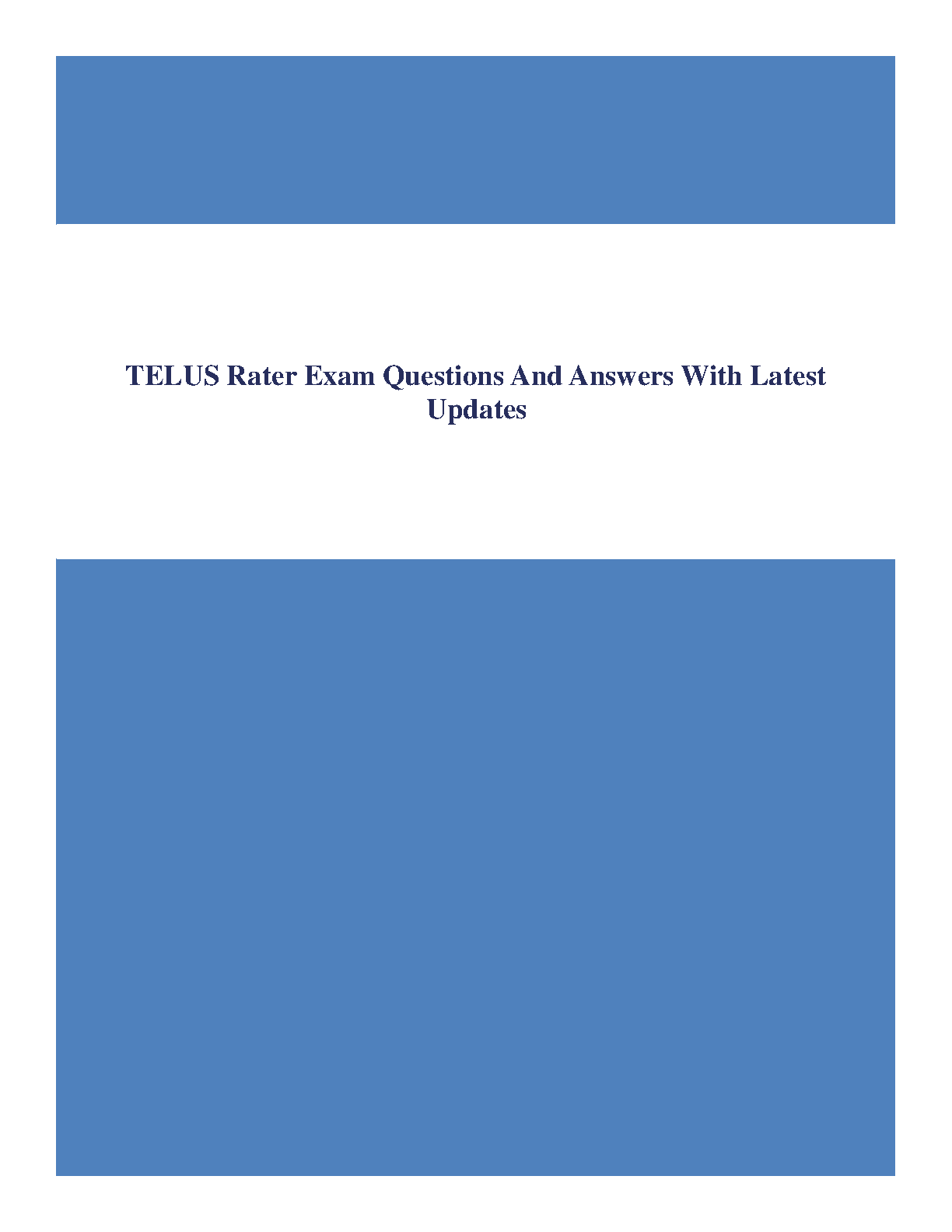 Telus Rater Exam Questions and Answers with Latest Updates 2024/2025 Edition
