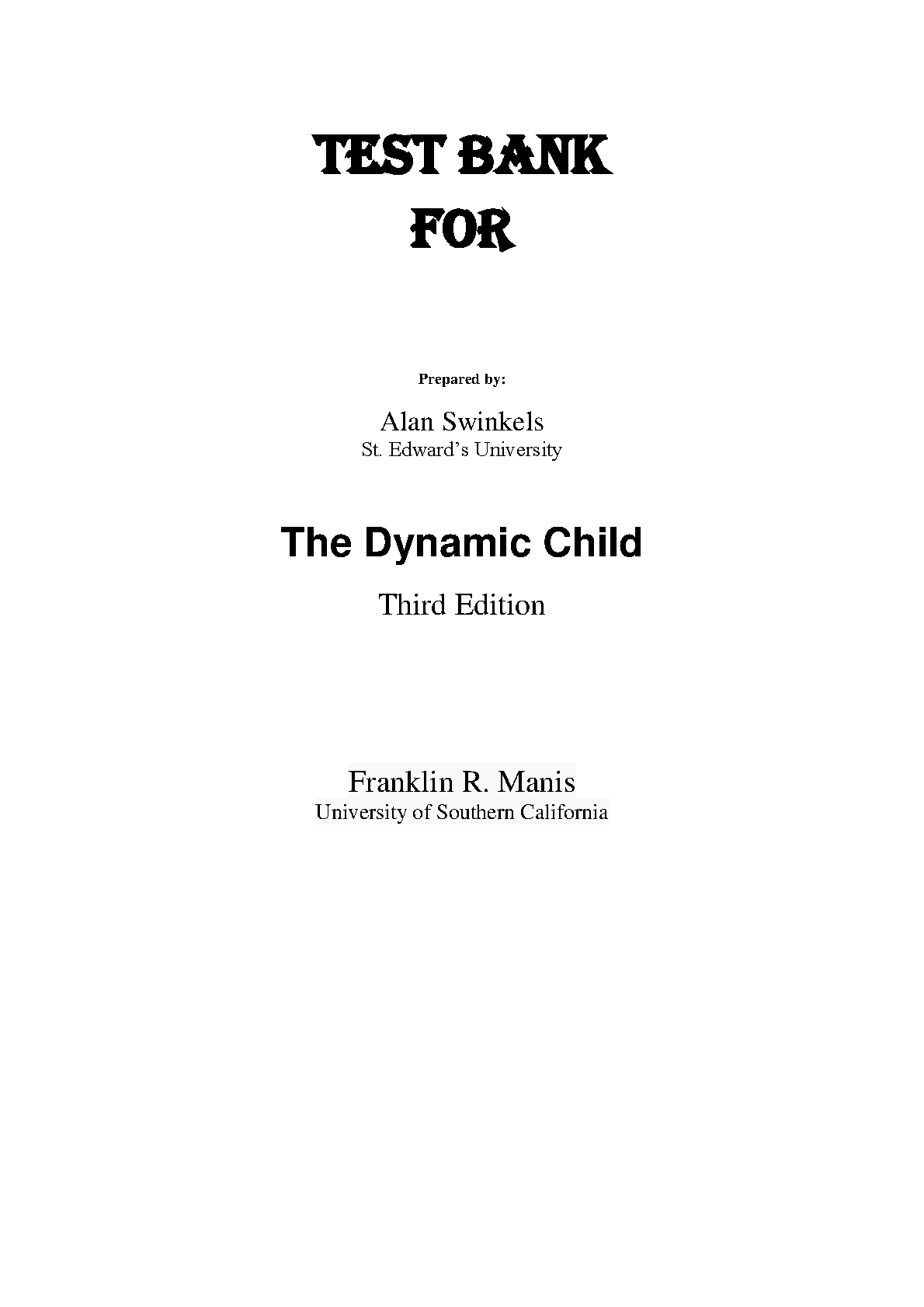Test Bank for The Dynamic Child, Third Edition by Alan Swinkels and Franklin R. Manis