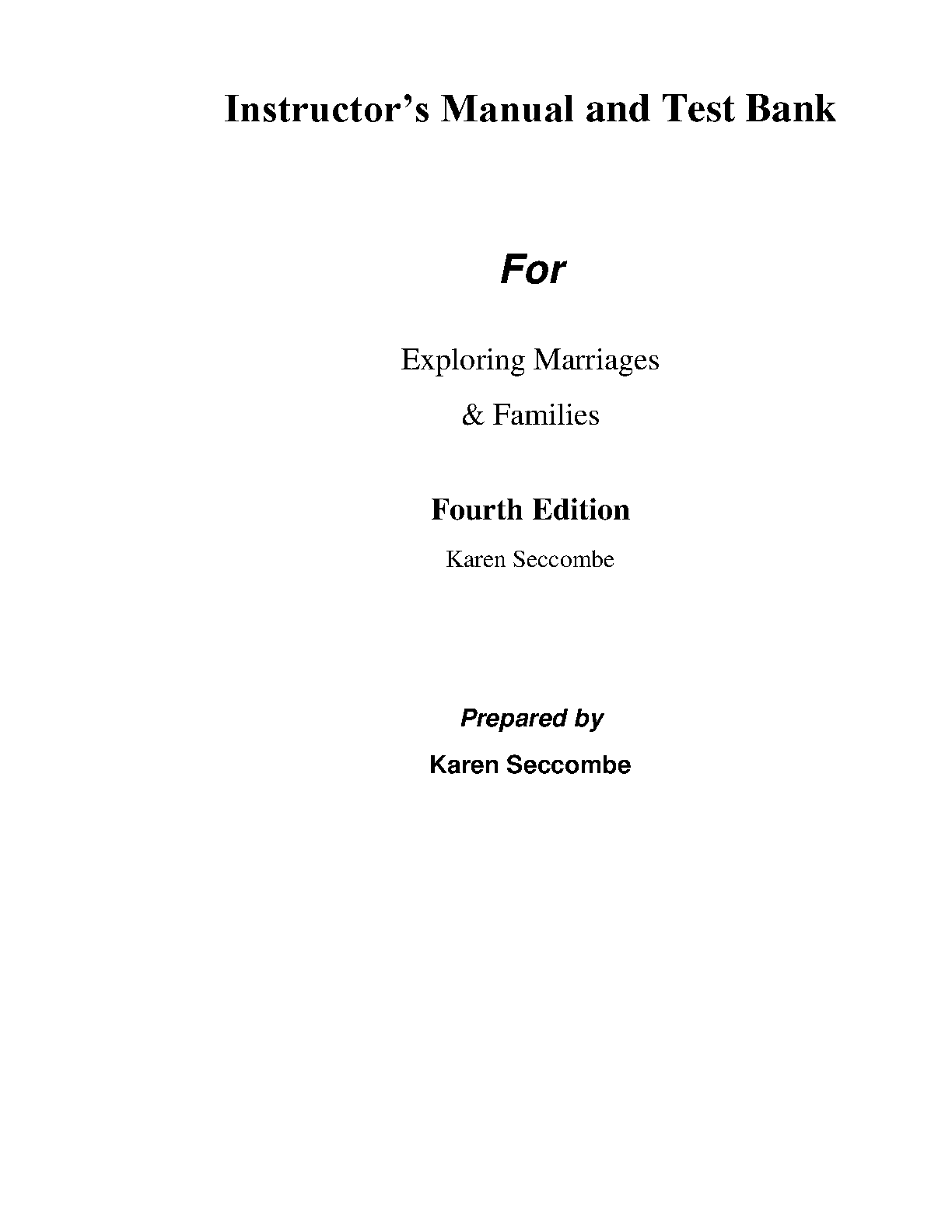 Exploring Marriages & Families: Fourth Edition Instructor's Manual and Test Bank by Karen Seccombe