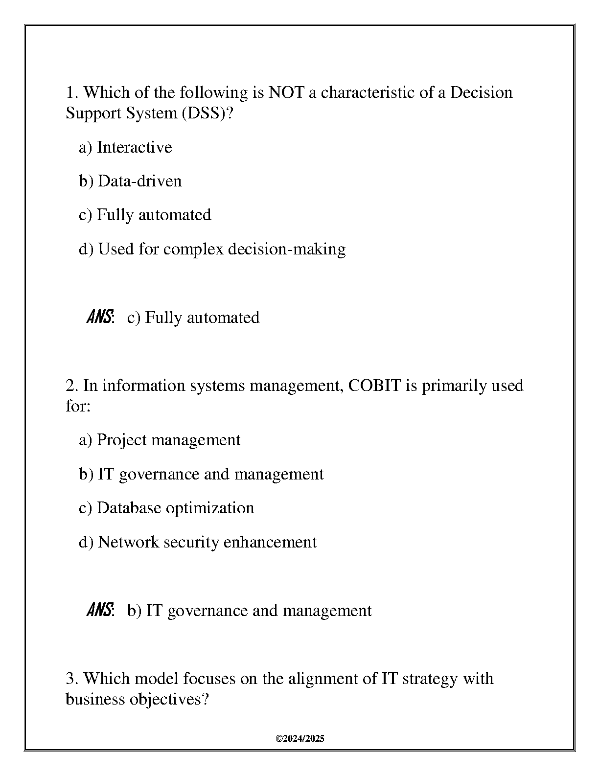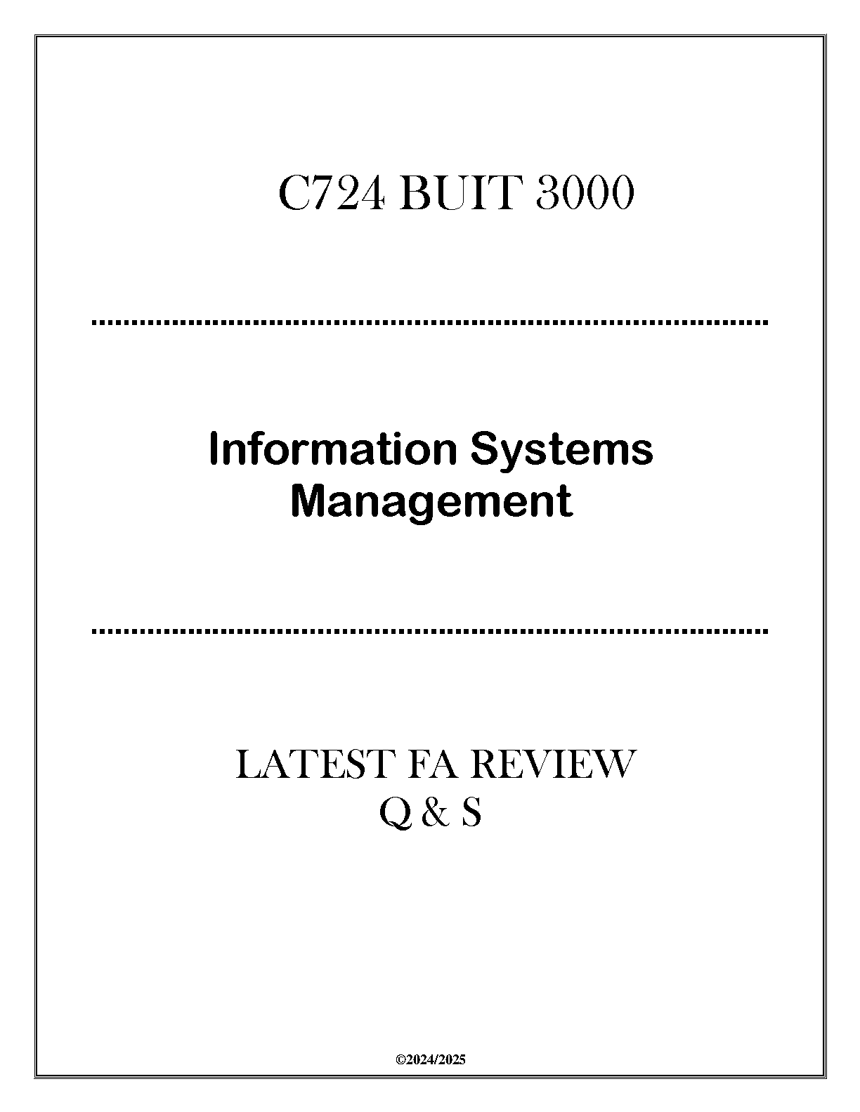 Ace your C724 BUIT 3000 Information Systems Management exam with this comprehensive 2024-2025 review guide. This resource is designed to help students pass on their first attempt, avoiding costly resits. Includes questions and answers covering all key concepts.