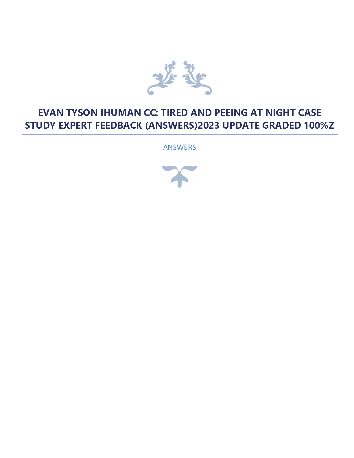 Ace your iHuman exams with this comprehensive guide to Evan Tyson's "Tired and Peeing at Night" case study. This updated 2024/2025 edition provides expert feedback and answers, ensuring you pass on your first attempt and avoid resits. Get the support you need for exam confidence!