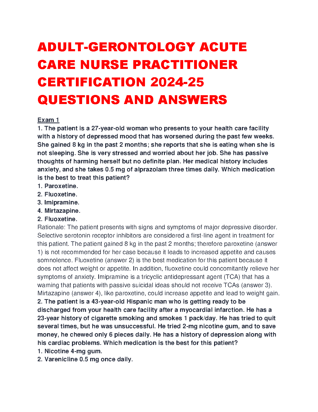 Ace your Adult-Gerontology Acute Care Nurse Practitioner Certification exam with this comprehensive guide covering key concepts and practice questions for the 2024-2025 academic year. Master the material and avoid resits with in-depth explanations.