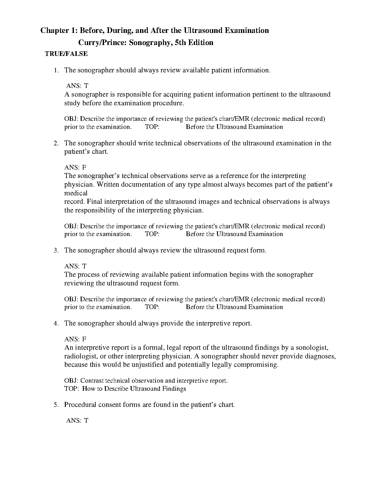 Test Bank for Sonography: Introduction to Normal Structure and Function, 5th Edition by Reva Arnez Curry and Marilyn Prince