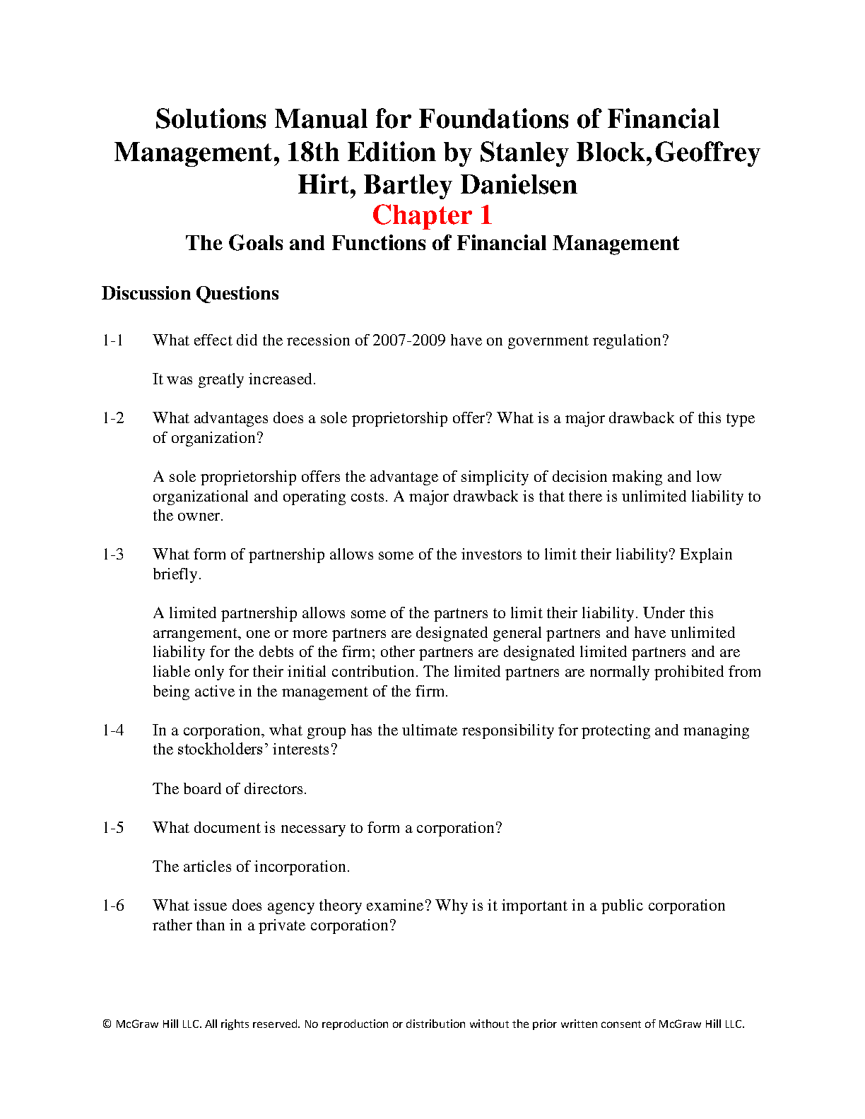 Foundations of Financial Management, Eighteenth Edition Test Bank by Block, Hirt, and Danielsen