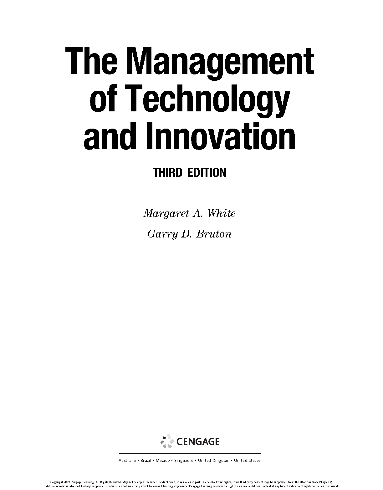 The Management of Technology & Innovation: A Strategic Approach, Third Edition by Robert White and George Brutton