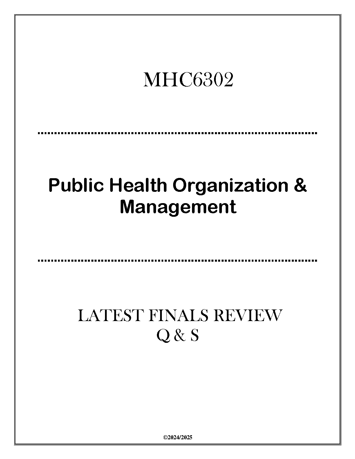 MHC6302 Public Health Organization & Management: Latest Finals Review Q&A for 2024-2025 Academic Year - Ace Your Exams on the First Attempt