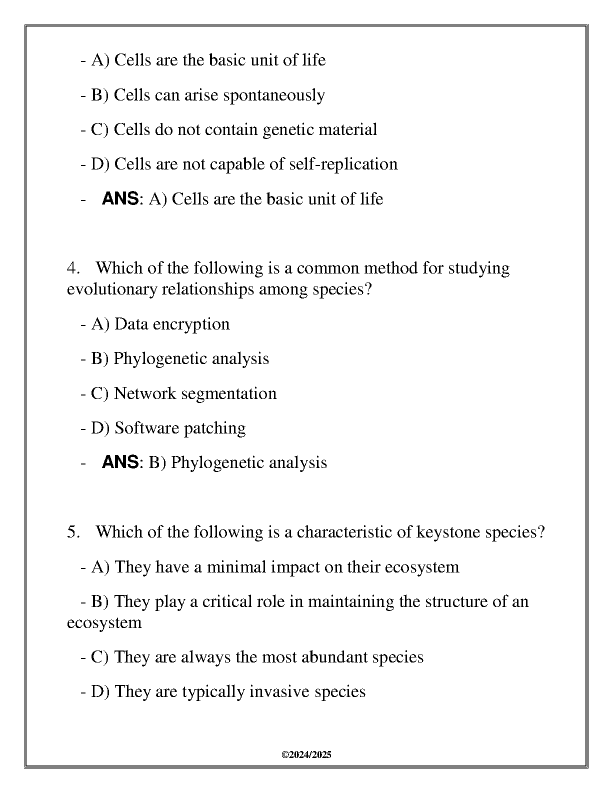 BIO110 Biology (Non-Lab) Finals Review Questions & Answers 2024/2025 Edition - Ace Your Exams!