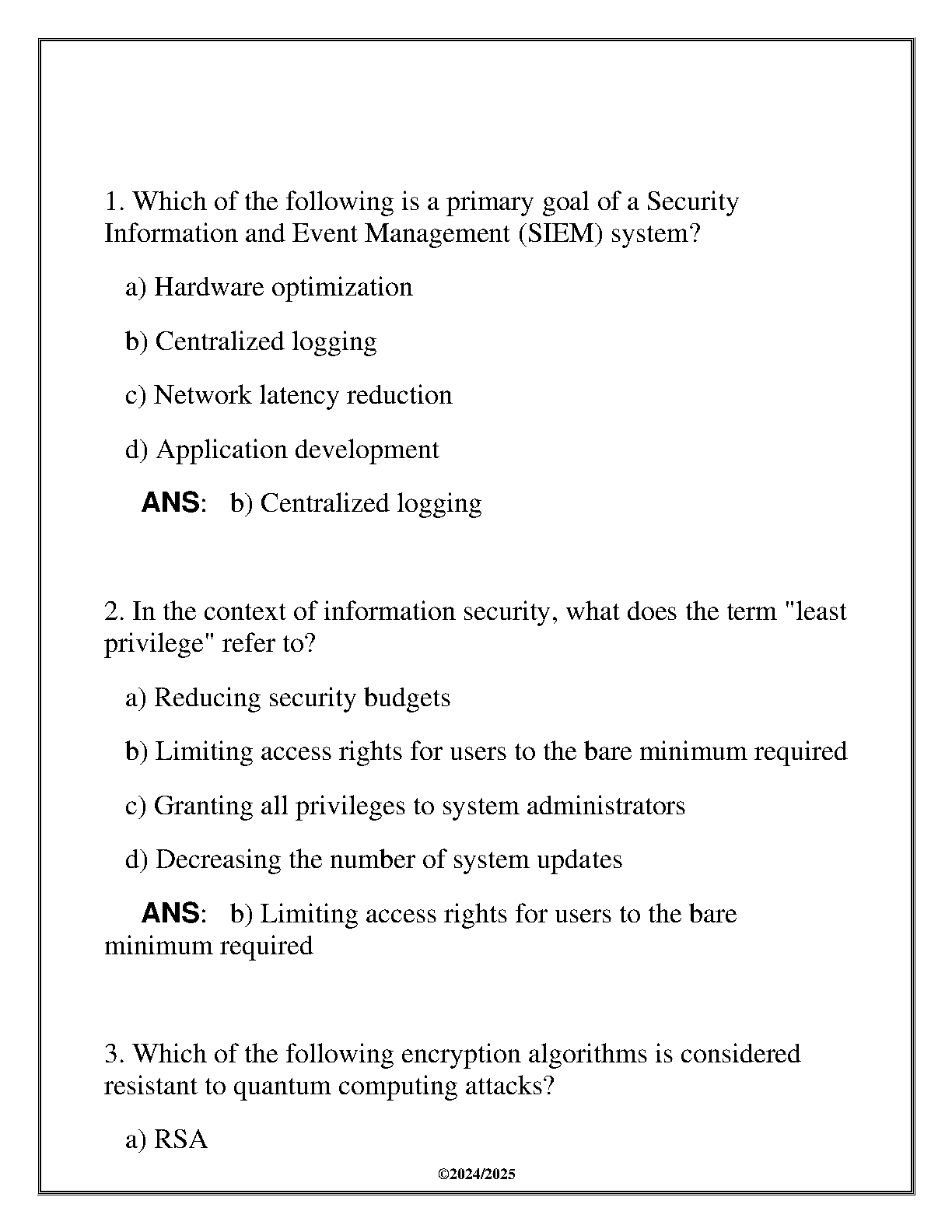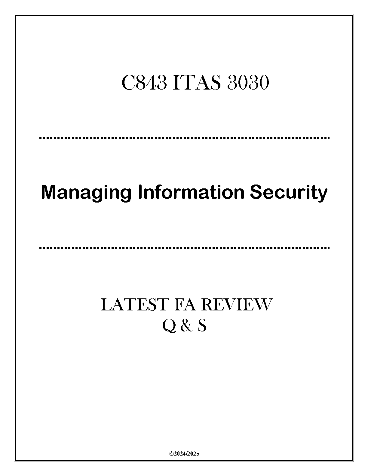 Ace your C843 ITAS 3030 Managing Information Security exam with this comprehensive 2024-2025 review guide. This resource is designed to help students pass on their first attempt, avoiding costly resits. Prepare efficiently and confidently.